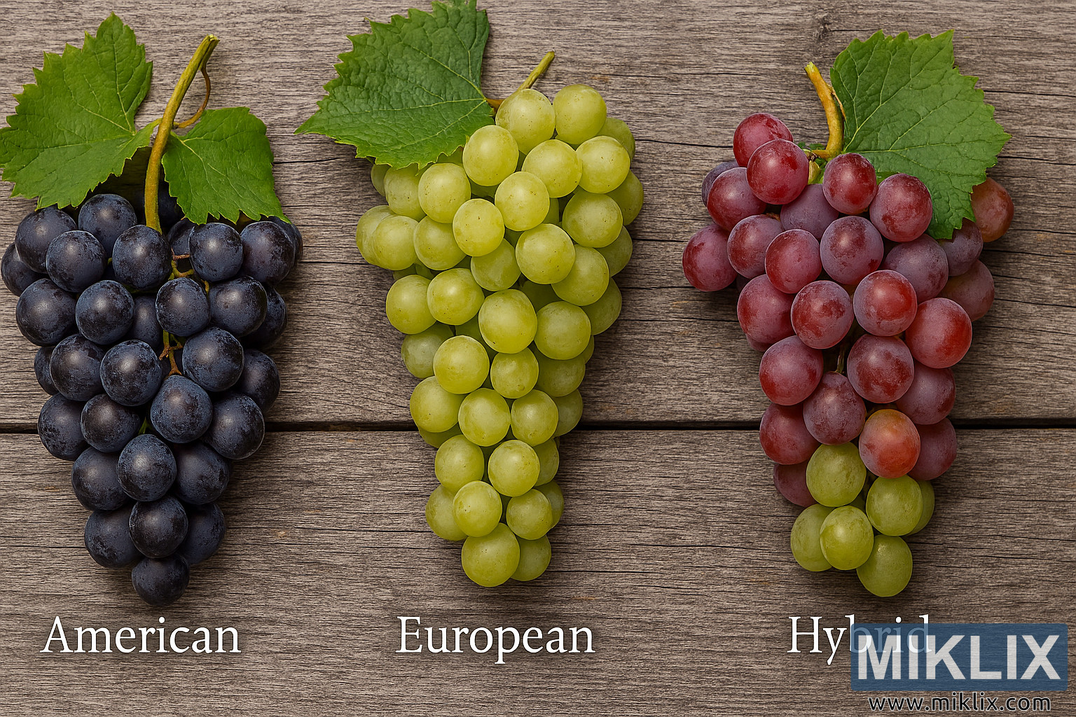 ಚಿತ್ರ: ಅಮೇರಿಕನ್, ಯುರೋಪಿಯನ್ ಮತ್ತು ಹೈಬ್ರಿಡ್ ದ್ರಾಕ್ಷಿ ಪ್ರಭೇದಗಳು