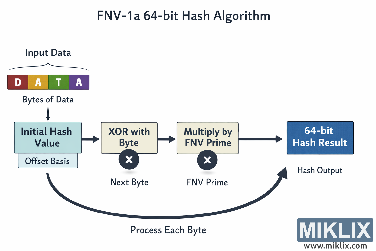 FNV-1 알고리즘이 이 작업을 수행하는 방식은 여러 단계를 거치는 과정입니다.