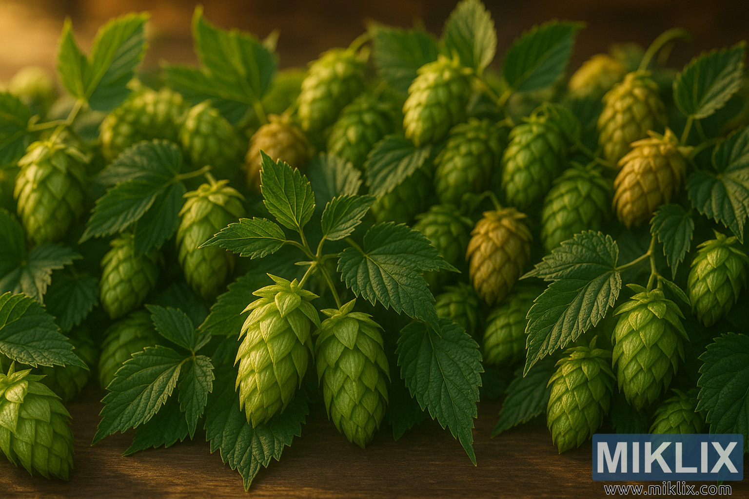 배경은 부드럽게 흐릿하게 처리되어, 보는 사람이 전경의 콘에 집중할 수 있도록 하면서도 갓 수확한 홉의 풍부한 느낌을 그대로 전달합니다. 늦여름 오후를 연상시키는 은은한 황금빛은 홉의 물리적 질감을 강조할 뿐만 아니라, 그 시간의 흐름 또한 암시합니다. 이 콘들은 덧없이 사라지는 계절의 보물과도 같습니다. 루풀린선에서 오일과 수지가 넘쳐흐르는 절정기에 수확되는데, 이 오일과 수지는 곧 발효조를 거쳐 맥주 애호가들의 잔에 담겨질 것입니다. 이러한 조명과 심도의 조화는 따뜻하고 경건한 분위기를 조성하여, 보는 사람이 잠시 멈춰 서서 이 생맥주 재료의 아름다움과 연약함에 대해 생각하게 합니다.
