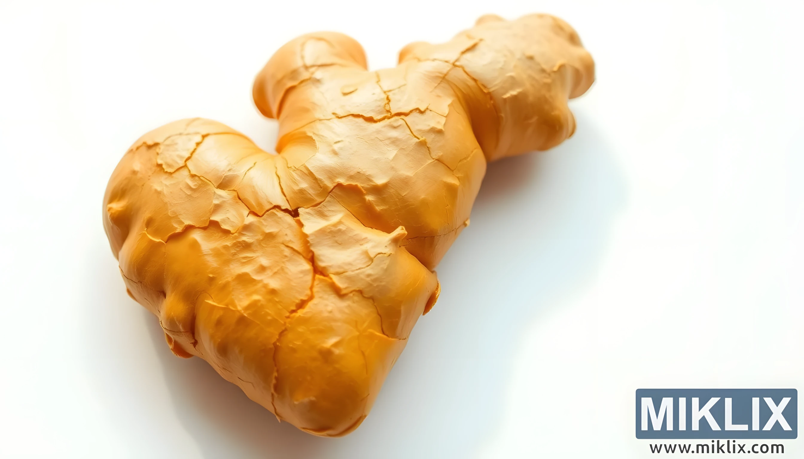 Attēlā redzama pārsteidzoši vienkārša, tomēr simboliski dziļa kompozīcija: sirdsveida ingvera sakne, kas iemūžināta tuvplāna fotogrāfijā, pārveidojot pieticīgu dabas gabaliņu par apliecinājumu veselībai, vitalitātei un dziļi iesakņotajām saitēm starp pārtiku un labsajūtu. Atrodoties uz tīras, neskartas baltas virsmas, ingvers piesaista uzmanību nevis ar savu sarežģītību, bet gan ar savu unikālo formu un dabisko tekstūru dabisko skaistumu. Tā virsma, ko iezīmē smalkas plaisas, krokas un maigās izciļņi, stāsta par augšanu un izturību, savukārt kopējā sirdij līdzīgā forma to paceļ pāri tikai botāniskam paraugam, pozicionējot to kā vizuālu metaforu sirds un asinsvadu veselībai un emocionālai barošanai.