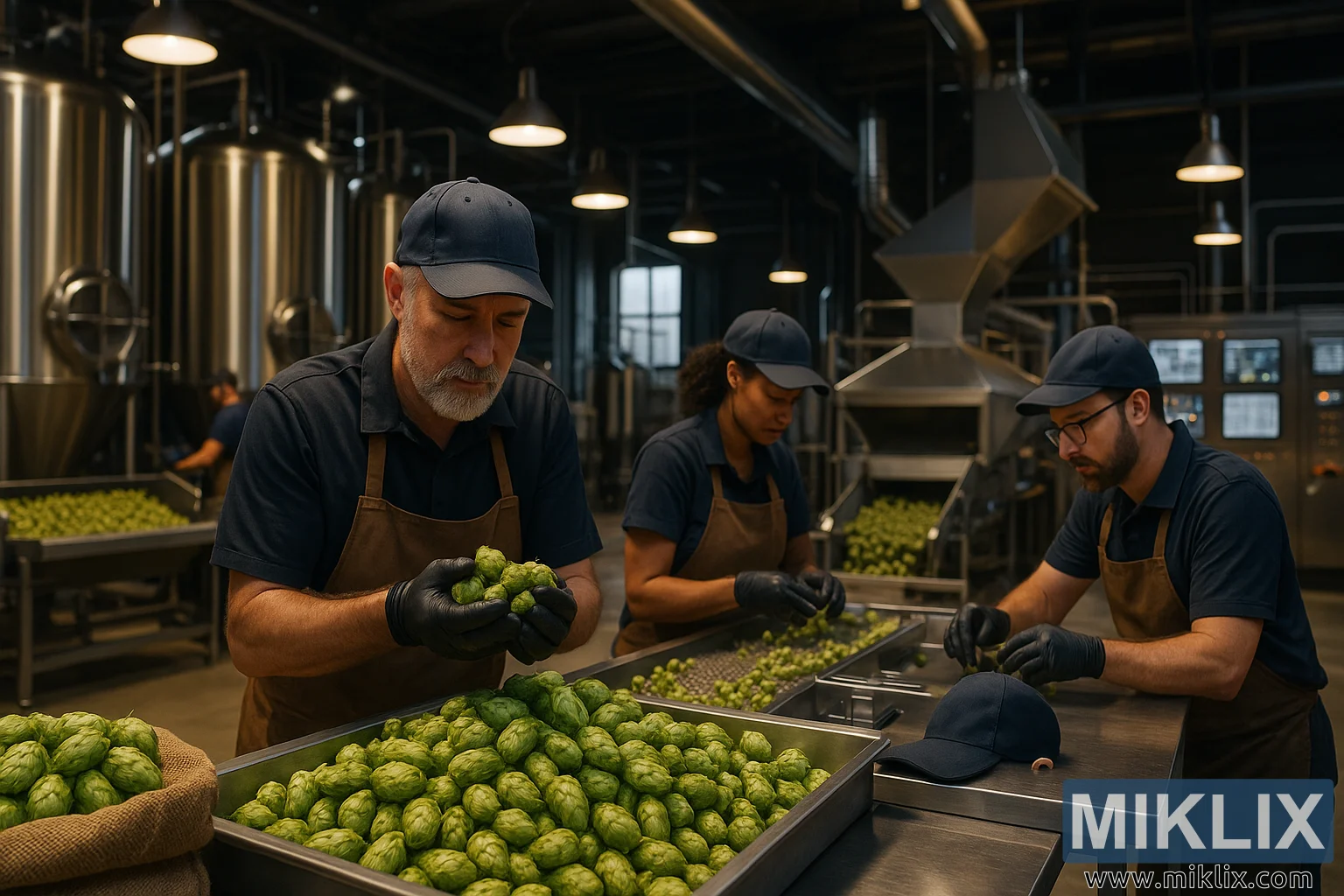 പാരമ്പര്യത്തെ നൂതനാശയങ്ങളുമായി സമന്വയിപ്പിച്ചുകൊണ്ട്, അത്യാധുനിക ബ്രൂവറിയിൽ ഉണക്കുന്നതിനും പെല്ലറ്റിംഗ് ചെയ്യുന്നതിനുമുള്ള ഉപകരണങ്ങൾക്കിടയിൽ, ബ്രൂവർമാർ പുതിയ കൊളംബിയ ഹോപ്പുകൾ പരിശോധിക്കുന്നു.