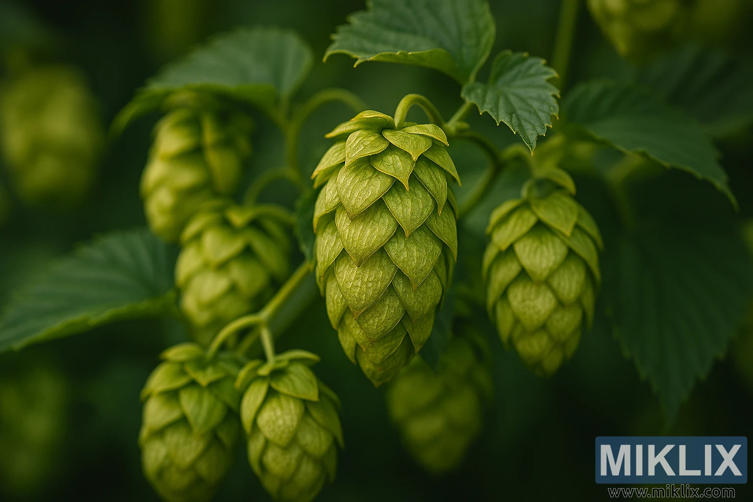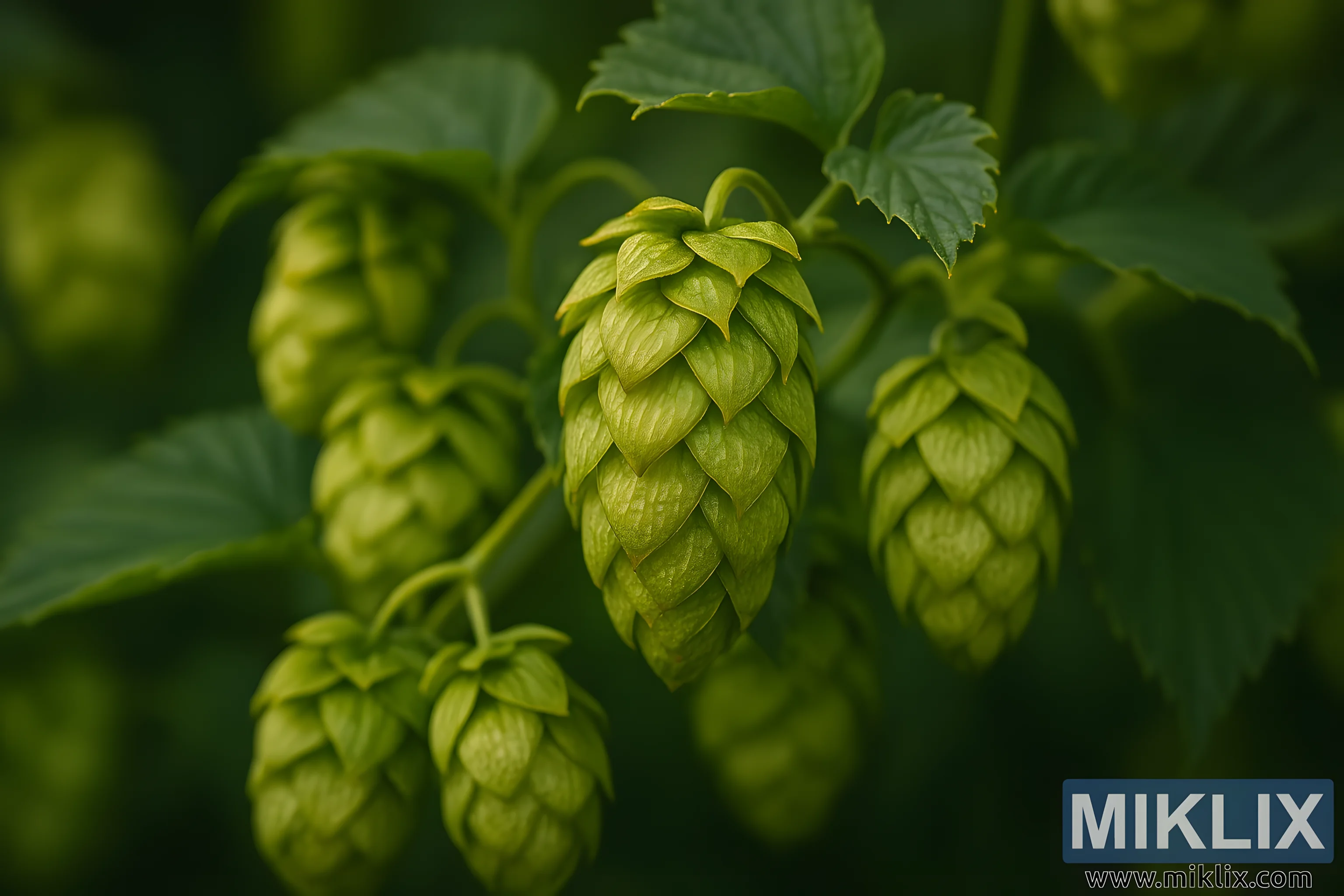 ചിത്രം: സസ്യശാസ്ത്ര വിശദാംശങ്ങളിൽ പ്രീമിയന്റ് ഹോപ് കോണുകൾ