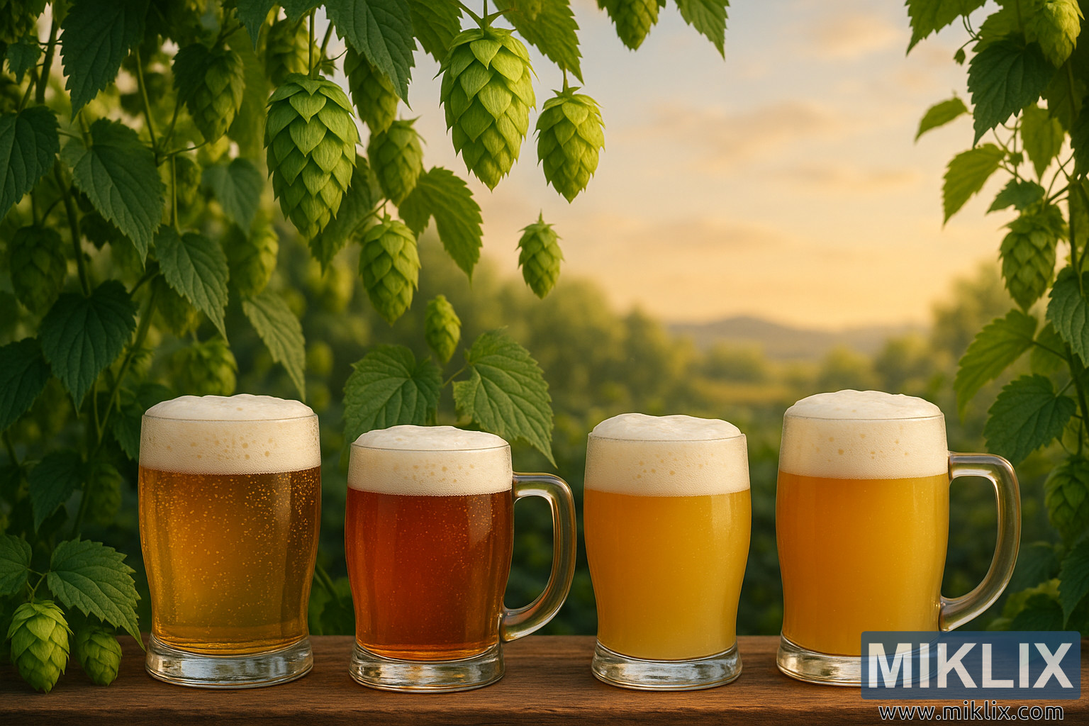 കൃഷി, കലാവൈഭവം, പാരമ്പര്യം എന്നിവ സംഗമിക്കുന്ന ഐക്യത്തിന്റെ ഒരു വിവരണമാണ് ചിത്രത്തിൽ നിന്ന് ഉരുത്തിരിഞ്ഞത്. മുകളിലുള്ള ഹോപ്സ് വെറും അലങ്കാര ഘടകങ്ങളല്ല - അവർ സംരക്ഷകരും ദാതാക്കളുമാണ്, താഴെയുള്ള മഗ്ഗുകൾക്ക് സമ്മാനങ്ങൾ നൽകുന്നു. ബിയറുകൾ, അതാകട്ടെ, സൂര്യപ്രകാശം ഏൽപ്പിച്ച വയലുകളുടെയും ശ്രദ്ധാപൂർവ്വമായ കൃഷിയുടെയും ബ്രൂവറിന്റെ കൈകളുടെയും ഓർമ്മകൾ വഹിക്കുന്ന അവയുടെ ഉത്ഭവത്തിന്റെ അംബാസഡർമാരാണ്. ഒരുമിച്ച്, ഘടകങ്ങൾ IPA യുടെ ഒരു ദർശനം ഒരു ബിയറായിട്ടല്ല, മറിച്ച് എണ്ണമറ്റ ഭാഷകളിൽ സംസാരിക്കുന്ന ഒരു സ്പെക്ട്രമായി രൂപപ്പെടുത്തുന്നു, എന്നാൽ ഹോപ്സിന്റെ പങ്കിട്ട പദാവലിയാൽ ഏകീകരിക്കപ്പെടുന്നു. അന്തരീക്ഷം ആഘോഷമാണ്, പക്ഷേ ആഡംബരപൂർണ്ണമല്ല, ക്ഷണിക്കുന്നതല്ല, പക്ഷേ തിരക്കുകൂട്ടരുത്, ഈ വൈവിധ്യത്തെ ബഹുമാനിക്കാനുള്ള ഏറ്റവും നല്ല മാർഗം താൽക്കാലികമായി നിർത്തി, ആഴത്തിൽ കുടിക്കുകയും ബൈനിൽ നിന്ന് ഗ്ലാസിലേക്കുള്ള യാത്രയെ അഭിനന്ദിക്കുകയും ചെയ്യുക എന്നതാണ്.