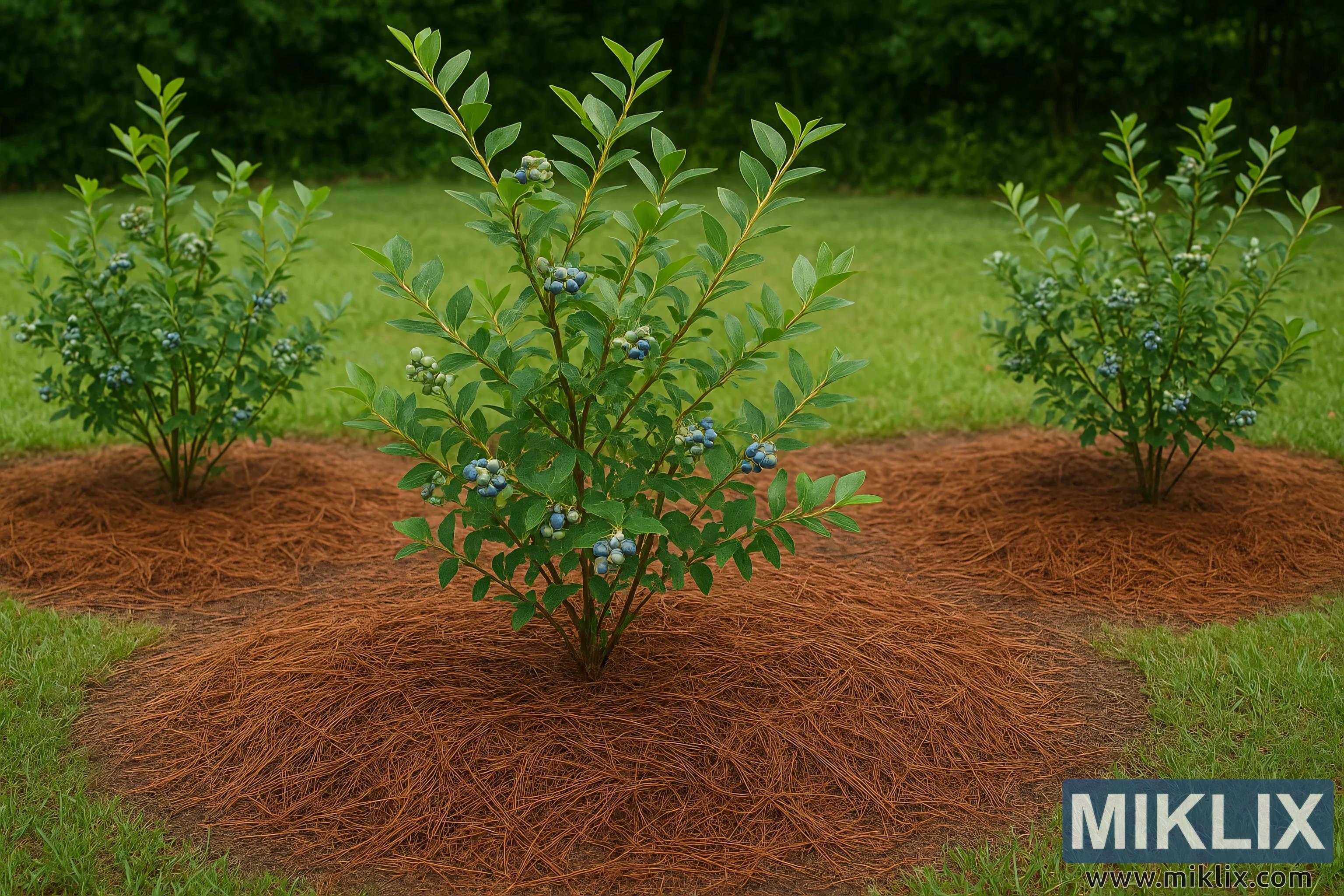 Properly Mulched Blueberry Bushes with Pine Needle Mulch