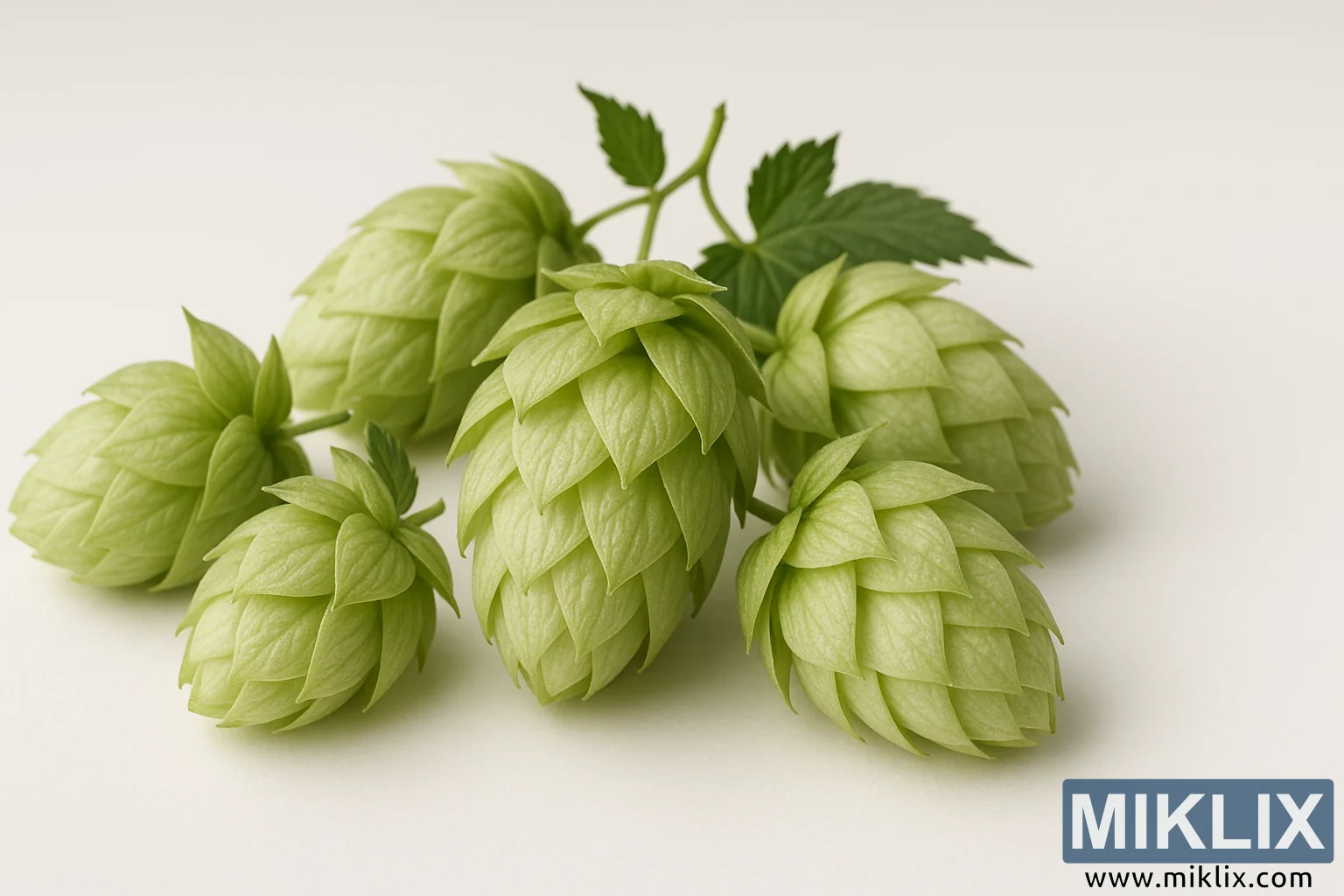 Конусууд нь байгалийн архитектур нь гол цэг болохуйц байдлаар харагдаж байна. Нарсны боргоцойны хайрс эсвэл нарийн нугалж буй цэцгийн дэлбээнүүд шиг давхцаж буй иш бүр нь эмзэг байдал, хүч чадлыг агуулдаг. Бариу, конус хэлбэрийн хэлбэрүүд нь ургац хураалтын зөв үе шатанд боловсорч гүйцсэнийг илтгэж байгаа бөгөөд энэ үед анхилуун үнэрт лупулин хамгийн тод илэрдэг. Студийн зөөлөн, чиглэлтэй гэрэлтүүлэг нь бариулын нарийн бүтэцийг онцлон тэмдэглэж, давхаргын хооронд бүдэгхэн сүүдэр үүсгэж, гурван хэмжээст гүний мэдрэмжийг сайжруулдаг. Энэхүү гэрэлтүүлгийн сонголт нь тод, нарийвчилсан дүр төрхийг бий болгохоос илүү зүйлийг хийдэг; Энэ нь эдгээр хонхорхойнууд нь шар айраг исгэхэд гүйцэтгэх үүргийг нь сайтар судалж, судалж буй сорьцууд юм шиг санаатай байдлыг илэрхийлдэг.