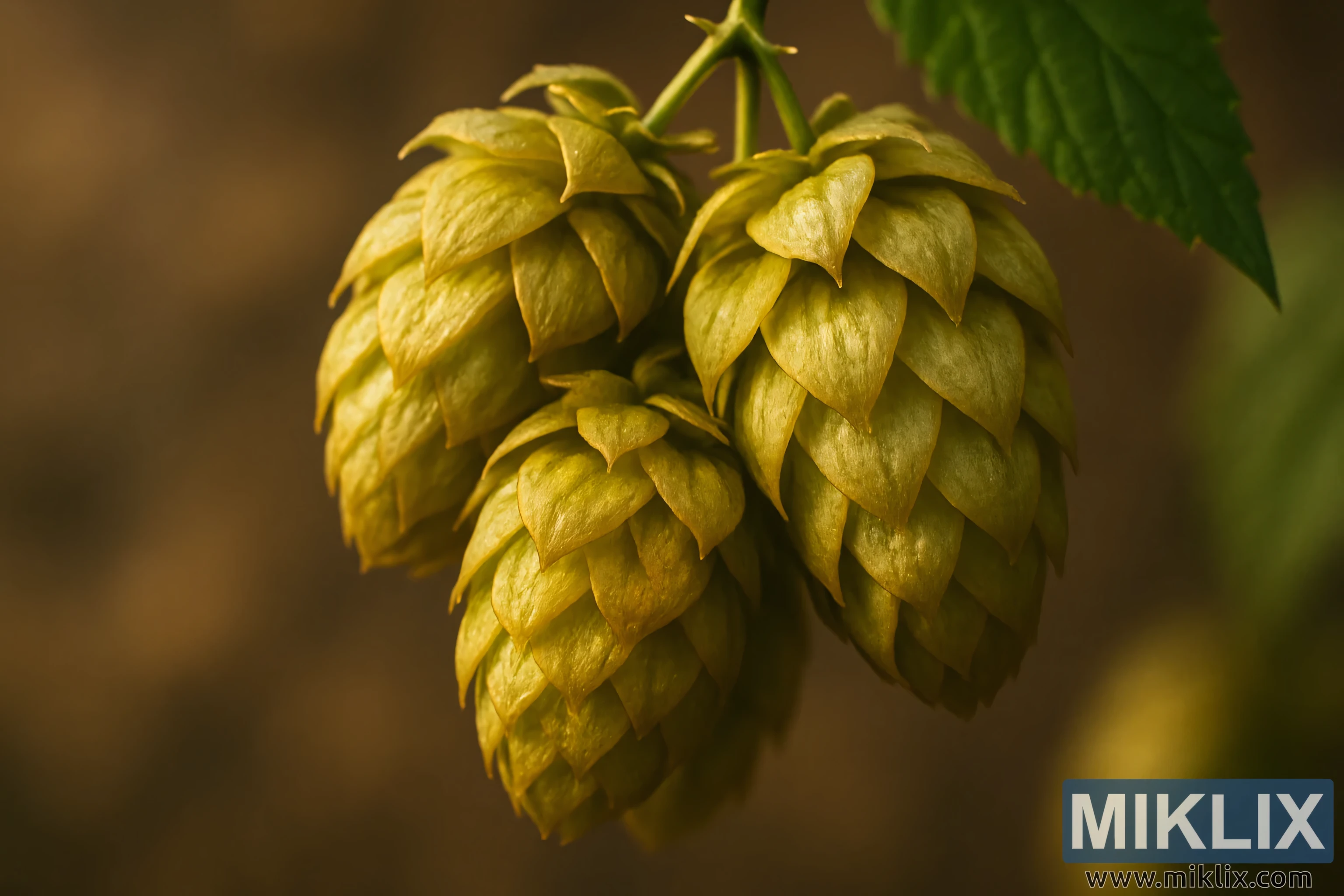 Энэ зураг нь хоп ургамлын байгалийн уран сайхныг тод харагдуулах бөгөөд дулаан, орчны гэрэлд зөөлөн гэрэлтэж байх тэр мөчид Southern Brewer хоп боргоцойны бөөгнөрөлийг дүрслэн харуулж байна. Давхардсан масштабтай нягт давхаргатай боргоцой нь боловсорч гүйцсэн байдал, эрч хүчийг илтгэдэг алтан ногоон өнгийн палитрыг харуулдаг. Тэдний гадаргуу нь маш нарийн гялалзаж, цаасан шигтгээ нь гэрлийг тусгаж, нарийн судалтай, бүтцийн нарийн төвөгтэй байдлыг илтгэдэг. Конус бүр нь түүний өсөлтийн түүх, аажмаар шар айраг исгэх үйл явцад зайлшгүй чухал үүрэг гүйцэтгэх давирхай, эфирийн тосны хуримтлалыг багтаасан мэт санагддаг.