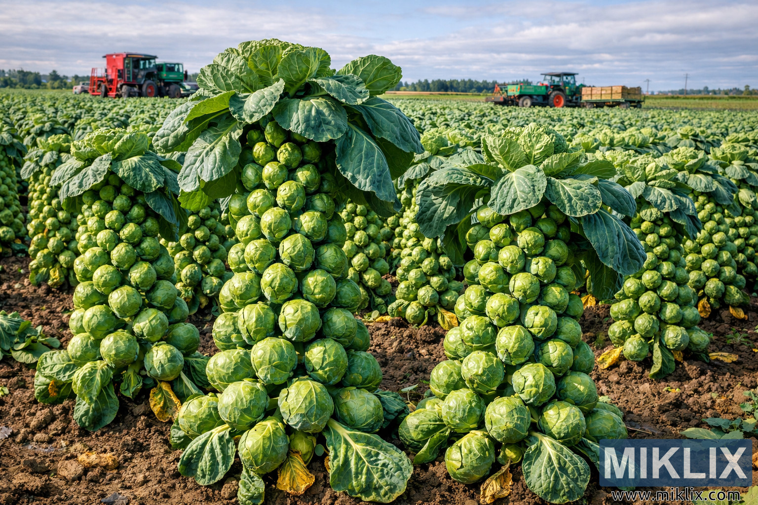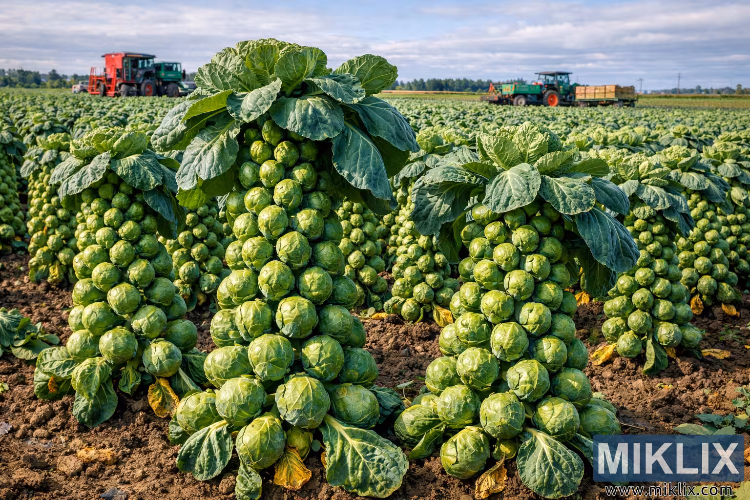 Нүд зураг руу гүн орох тусам Диабло Брюссель нахиалдаг эгнээнүүд алс хол сунаж, томоохон хэмжээний арилжааны үйлдвэрлэл, тогтвортой ургацын үр дүнгийн мэдрэмжийг бататгадаг. Тэгш зайтай ургамлуудын давталт нь талбай даяар жигд өсөлт, өндөр ургацын боломжийг онцолж өгдөг. Газрын дунд хэсэгт хөдөө аж ахуйн машин механизм, ургац хураалтын тоног төхөөрөмж, цөөн хэдэн ажилчид харагдаж байгаа нь ургацаас сатааралгүйгээр идэвхтэй эсвэл саяхан ургац хураалтын ажлыг нарийн харуулж байна. Эдгээр элементүүд нь аж үйлдвэрийн хэмжээний газар тариалангийн нөхцөл байдлыг хангаж, бүтээмж, үр ашгийг онцолж өгдөг.