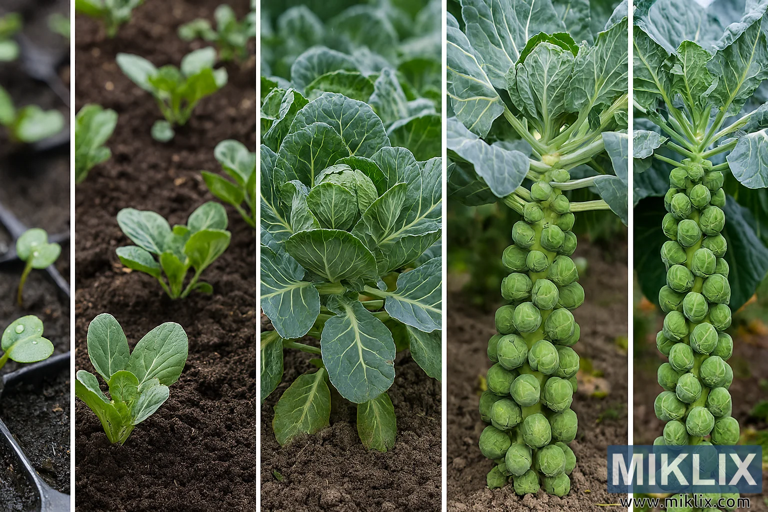 Энэхүү өндөр нягтралтай коллажаас Брюссель байцааны суулгацнаас эхлээд ургац хураахад бэлэн иш хүртэлх бүрэн ургалтын мөчлөгийг судлаарай.