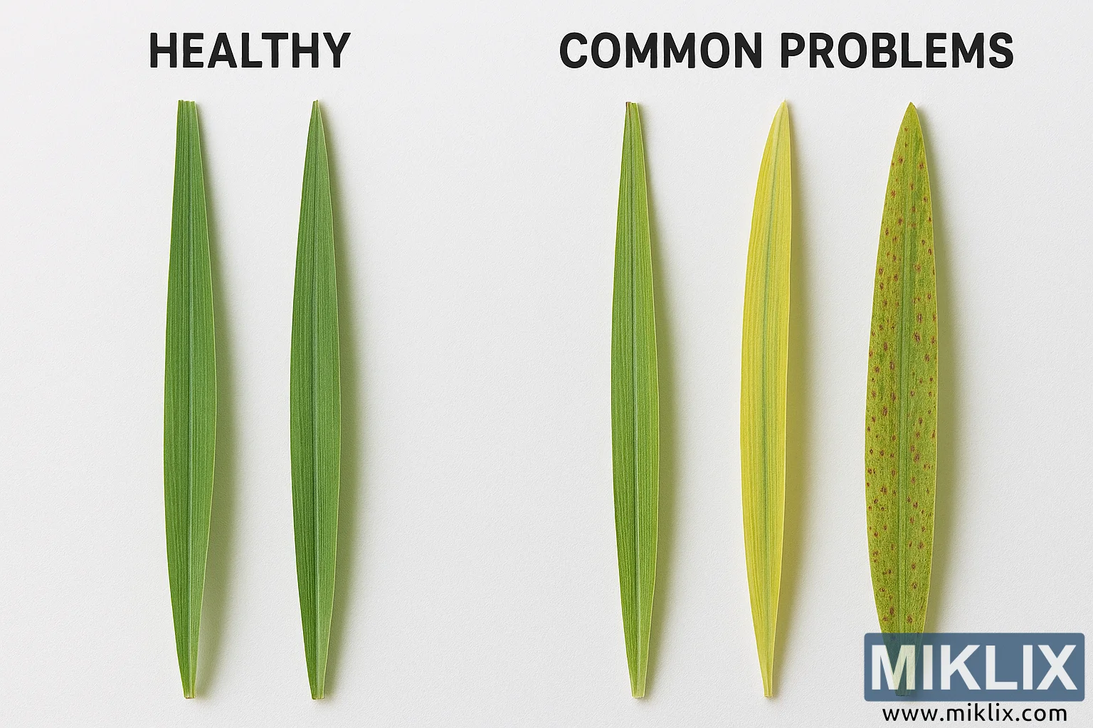 Зураг: Эрүүл ба асуудалтай нимбэгний өвсний навчнууд