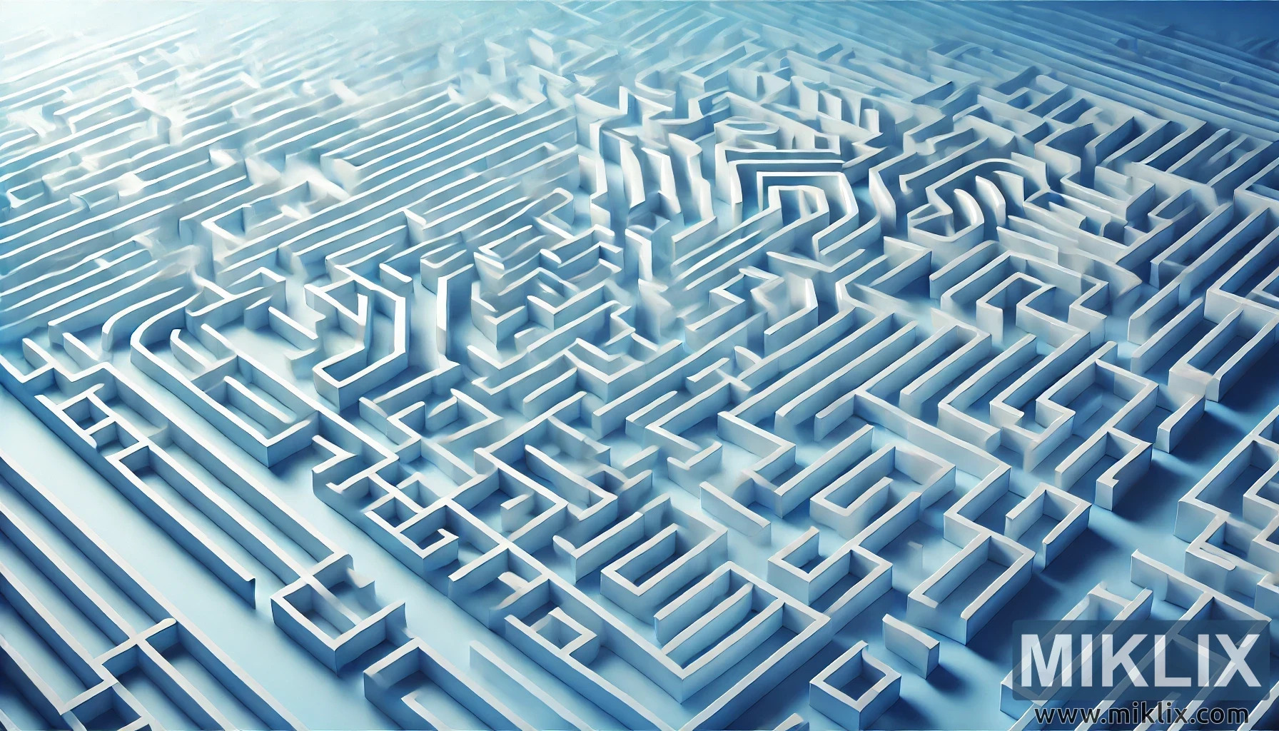 Энэхүү дижитал дүрслэл нь бүхэл бүтэн хүрээг хамарсан өргөн уудам, нарийн төвөгтэй төөрдөг байшинг дүрсэлсэн бөгөөд энэ нь нарийн төвөгтэй байдал, асуудал шийдвэрлэх, эрэл хайгуулыг бэлэгддэг. Лабиринт нь хурц геометрийн өнцөг бүхий өндөр цагаан хананаас бүрдэх бөгөөд түүний гурван хэмжээст гүнийг сайжруулдаг нарийн сүүдэр бий болгодог. Энэхүү загвар нь тоо томшгүй олон зам, мухар зам, огцом эргэлтийг багтаасан бөгөөд энэ нь навигацийн сорилт, бүтэцлэгдсэн хязгаарлалтын хүрээнд шийдлийг эрэлхийлэхэд хүргэдэг. Зургийн хэтийн төлөв нь алс холын зайд бүдгэрч, коридор, сонголтуудын хязгааргүй өргөнийг санал болгож, оньсого, шийдвэр гаргах үйл явцын дийлэнх мөн чанарыг онцолж байна. Хүйтэн цэнхэр, цагаан өнгөний схем нь тайван атлаа хийсвэр уур амьсгалыг бий болгож, бие махбодийн болон заналхийлсэн орчин гэхээсээ илүү оюуны сорилт санааг бэхжүүлдэг. Энэхүү төөрдөг байшинг амьдралын саад тотгор, стратегийн сэтгэлгээ эсвэл техникийн асуудлыг шийдвэрлэх зүйрлэл гэж тайлбарлаж, нарийн төвөгтэй системүүдээр аялах урам хугарах, сэтгэл татам байдлыг хоёуланг нь багтаасан болно.