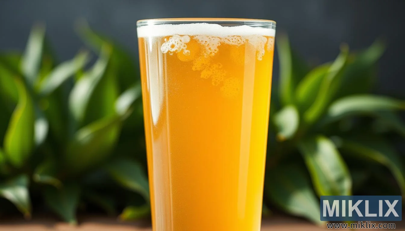 Estetika kedesaan lagi halus pada gambar itu menyampaikan lebih daripada kualiti visual kombucha. Ia mencadangkan peranan minuman sebagai ubat tradisional dan trend kesihatan moden. Kegemukan membayangkan manfaat probiotiknya, budaya hidup di dalamnya berfungsi untuk menyokong pencernaan dan kesihatan usus. Rona keemasan mengingatkan cahaya matahari dan tenaga, selaras dengan rasa pembaharuan dan keseimbangan yang sering dikaitkan oleh penggemar kombucha dengan minuman. Penutup buihnya, ringan dan sekejap, menambahkan sentuhan ketidakkekalan, mengingatkan kita tentang proses dan transformasi semula jadi yang menjadikan setiap kumpulan unik.