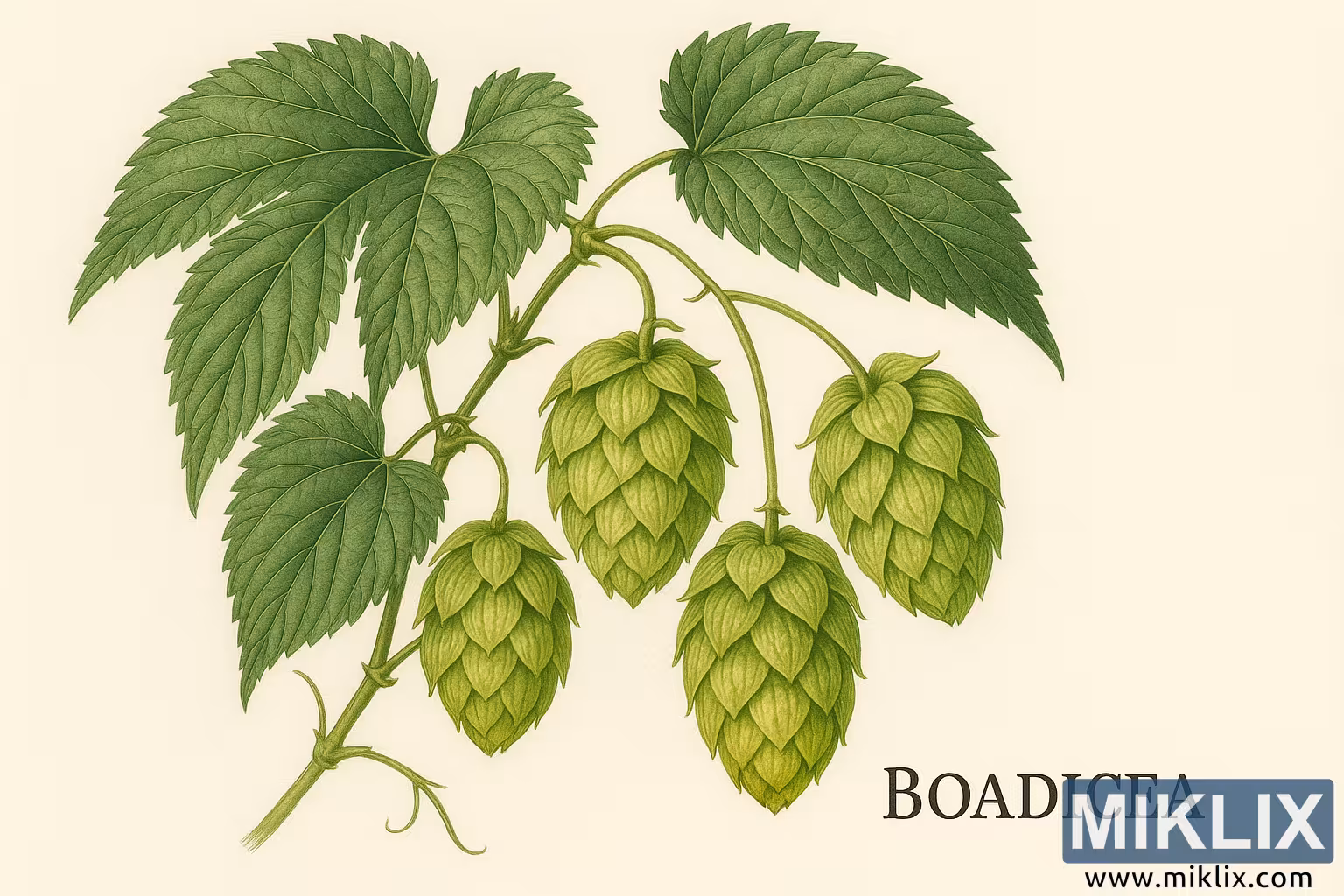 Botanical Illustration of the Boadicea Hop Variety