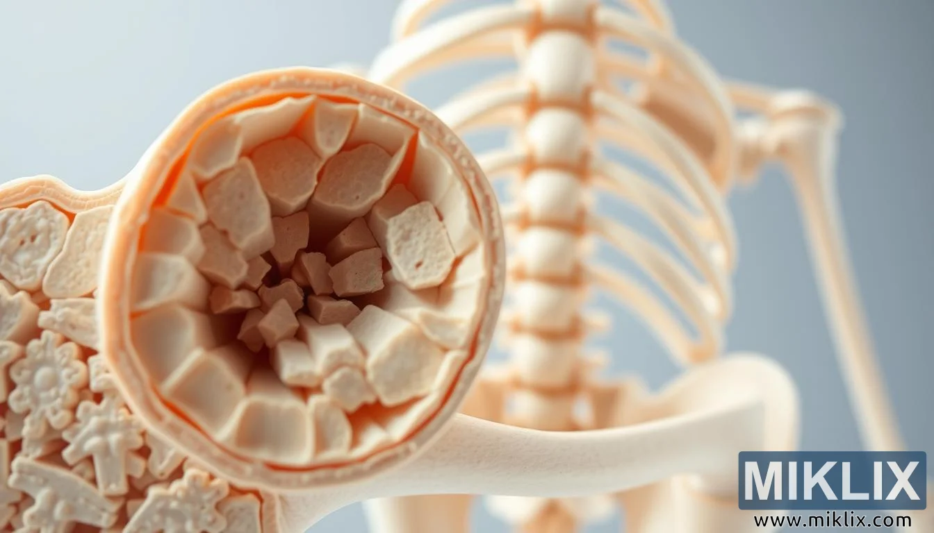 လူ၏အရိုး၏အသေးစိတ်ပိုင်းဖြတ်ပိုင်းသည် trabecular နှင့် cortical အလွှာများ၊ အသွင်အပြင်များနှင့် သိပ်သည်းဆကို မီးမောင်းထိုးပြကာ အရိုးကျန်းမာရေးနှင့် ခွန်အားလေ့ကျင့်ခြင်း၏ အကျိုးကျေးဇူးများကို ကိုယ်စားပြုသည်။
