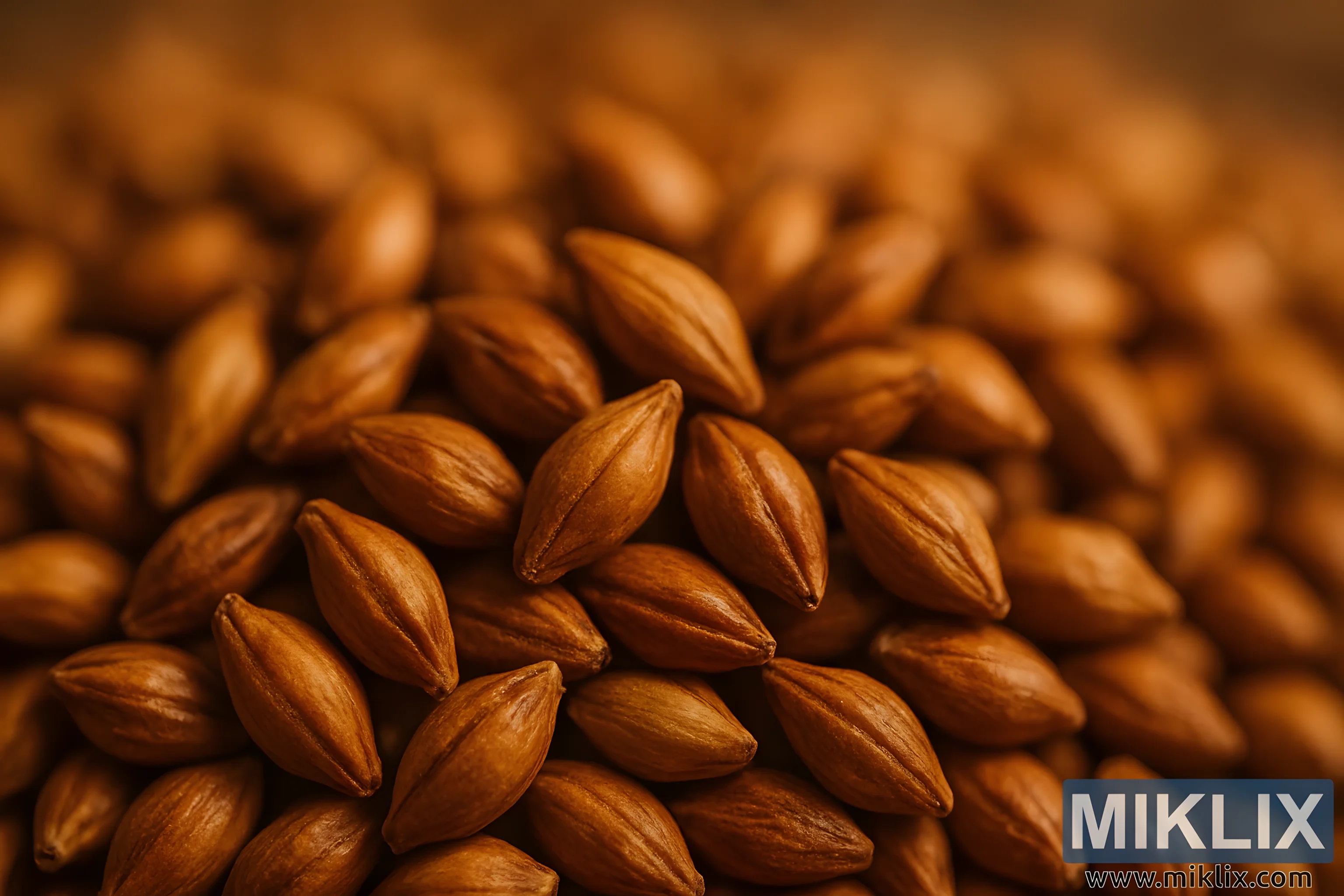 Bilde: Nærbilde av kjeksfargede maltkorn
