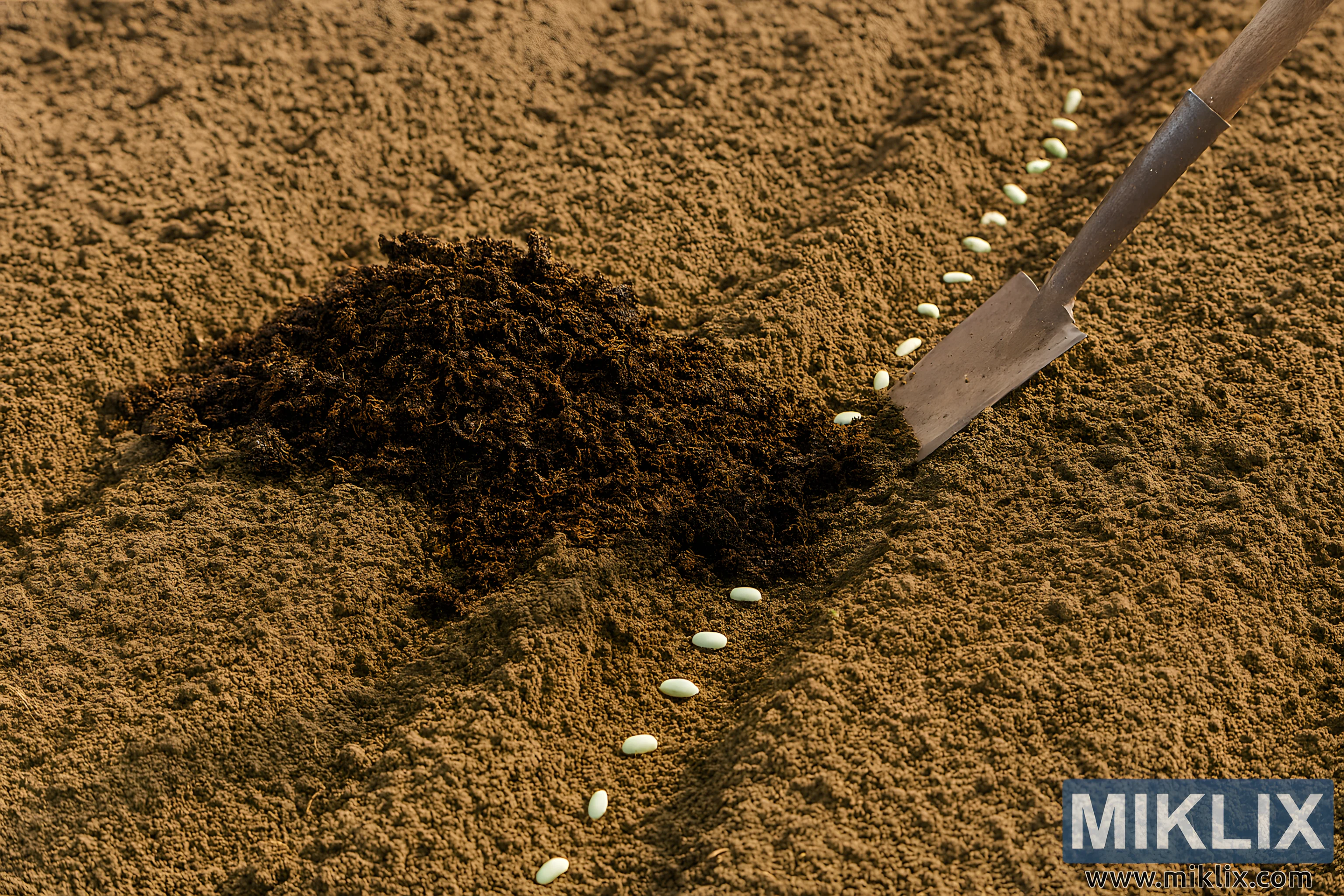 Bilde: Kompostblanding i hagejord for planting av grønne bønner