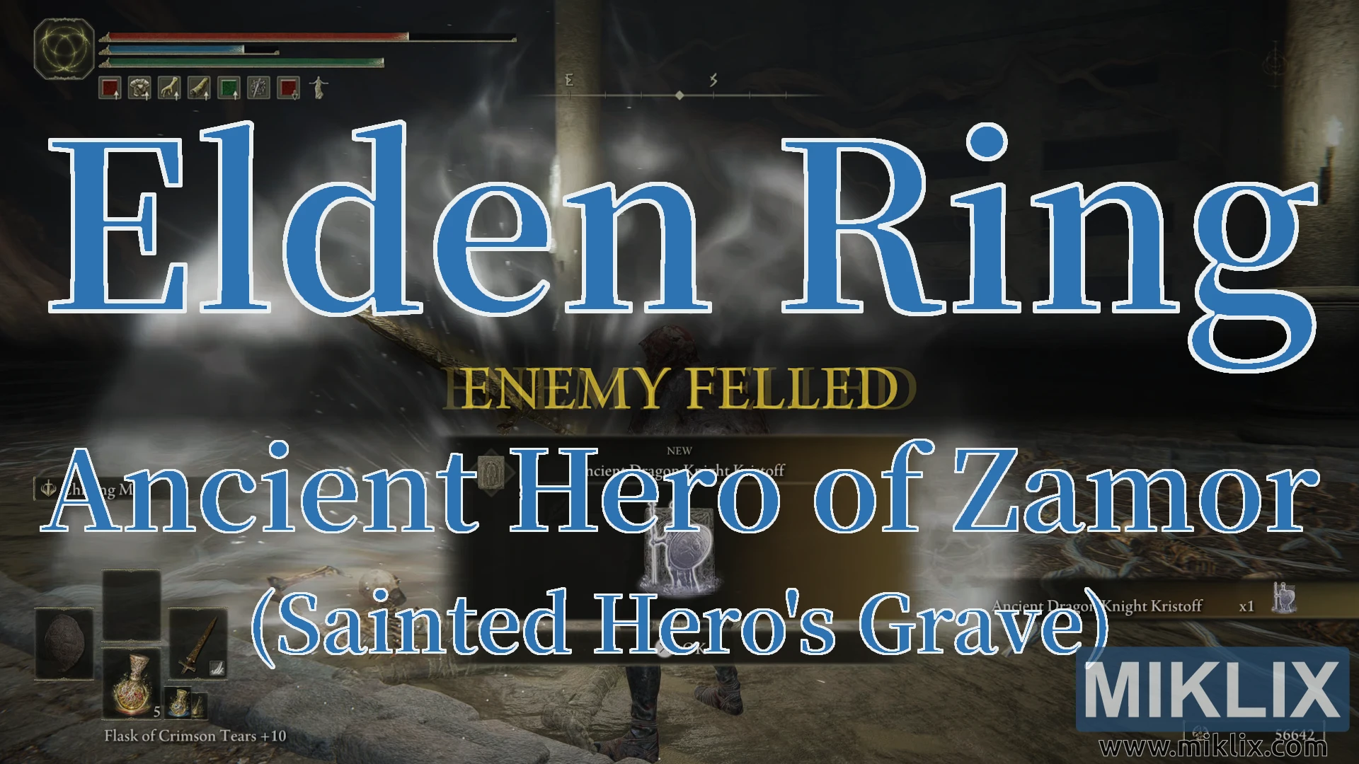 Zamors gamle helt er på det laveste nivået, feltbosser, og er sluttbossen i fangehullet Sainted Hero's Grave på det sentrale Altus-platået. Som de fleste mindre bosser i spillet er denne valgfri i den forstand at du ikke trenger å beseire den for å komme videre i hovedhistorien, men han slipper en av de beste tank-åndsaskene i spillet, så det kan være verdt å drepe ham hvis du liker å tilkalle hjelp.
