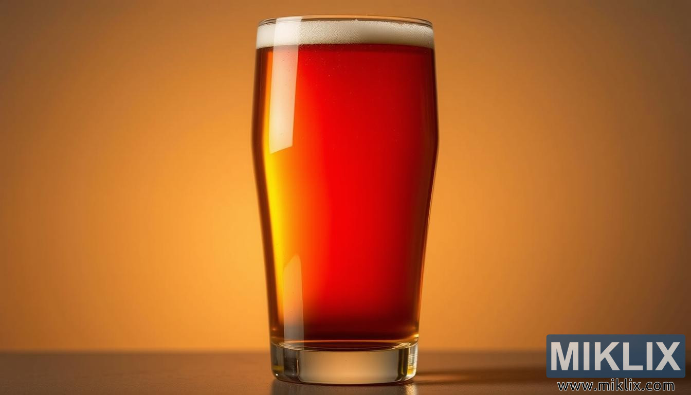 न्यानो, परिवेशको प्रकाशले भरिएको, छविले शान्त भव्यता र संवेदी आकर्षणको क्षणलाई कैद गर्दछ - एकल पिन्ट गिलास जुन समृद्ध रंगीन बियरले भरिएको छ, यसको रंगहरू माथिबाट तलसम्म एक मोहक ढालमा सूक्ष्म रूपमा सर्दै छन्। भित्रको तरल पदार्थ सतह नजिकै उज्ज्वल एम्बर-सुनौलोको साथ चम्किन्छ, बिस्तारै तल झर्दै जाँदा एक समृद्ध महोगनी स्वरमा गहिरो हुँदै जान्छ, जसले परिशुद्धता र हेरचाहको साथ बनाइएको ब्रूलाई सुझाव दिन्छ। रंगको यो निर्बाध संक्रमण केवल सौन्दर्य मात्र होइन; यसले विशेष माल्टहरूको विचारशील प्रयोगलाई बोल्छ, विशेष गरी डिहस्क्ड काराफा, जसले अत्यधिक तीतोपन बिना गहिराई र जटिलता प्रदान गर्दछ। नतिजा एक बियर हो जुन दृश्यात्मक रूपमा आश्चर्यजनक छ र यसको उपस्थिति जस्तै तहमा स्वाद प्रोफाइलको प्रतिज्ञा गर्दछ।