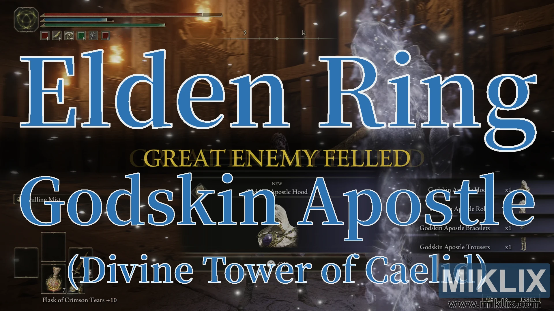 ଗଡସ୍କିନ୍ ଆପୋଷ୍ଟଲ୍ ଏଲଡେନ୍ ରିଙ୍ଗ, ଗ୍ରେଟର୍ ଏନିମି ବସ୍ସରେ ବସ୍ମାନଙ୍କର ମଧ୍ୟମ ସ୍ତରରେ ଅଛନ୍ତି ଏବଂ କେଲିଡ୍ର ଡିଭାଇନ୍ ଟାୱାର ଭିତରେ ତଳ ଭାଗରେ ଅଛନ୍ତି। ଖେଳର ଅଧିକାଂଶ କମ୍ ବୟସ୍କ ବସ୍ଙ୍କ ପରି, ଏହା ଏହି ଅର୍ଥରେ ଇଚ୍ଛାଧୀନ ଯେ ମୁଖ୍ୟ କାହାଣୀକୁ ଆଗକୁ ବଢ଼ାଇବା ପାଇଁ ଆପଣଙ୍କୁ ଏହାକୁ ପରାସ୍ତ କରିବାକୁ ପଡ଼ିବ ନାହିଁ।