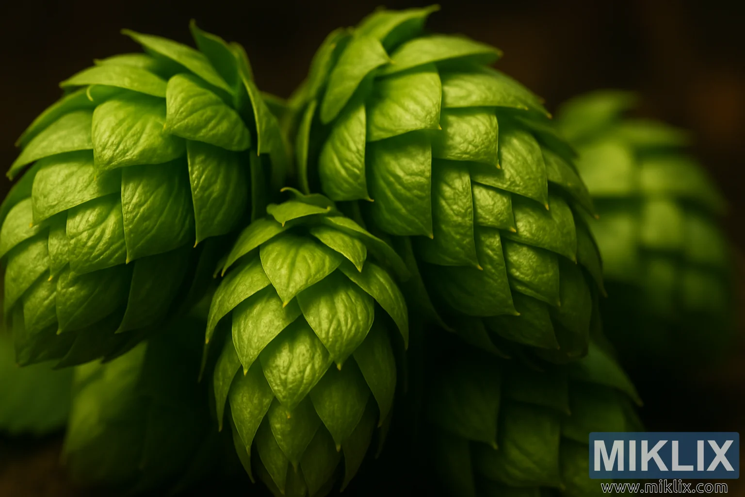ଏହି ଚିତ୍ରଟି ସ୍ପନ୍ଦନଶୀଳ ସବୁଜ ବଉକ୍ଲିଅର୍ ହପ୍ କୋନ୍ଗୁଡ଼ିକର ଏକ ଅନ୍ତରଙ୍ଗ, ନିକଟତମ ଦୃଶ୍ୟ ଉପସ୍ଥାପନ କରେ, ଯାହା ଅସାଧାରଣ ସ୍ପଷ୍ଟତା ଏବଂ ସୂକ୍ଷ୍ମତା ସହିତ କଏଦ କରାଯାଇଛି। ପ୍ରତ୍ୟେକ କୋନ୍ କାଗଜ ଭଳି ବ୍ରାକ୍ଟଗୁଡ଼ିକର ଏକ ସ୍ତରୀୟ ବ୍ୟବସ୍ଥା ପ୍ରଦର୍ଶନ କରେ, ଯାହା ଗଛର ପ୍ରାକୃତିକ ପ୍ରତିସମତାକୁ ଗୁରୁତ୍ୱ ଦେଉଥିବା ସଂକୀର୍ଣ୍ଣ, ଜ୍ୟାମିତିକ ଢାଞ୍ଚାରେ ଧୀରେ ଧୀରେ ଓଭରଲାପ୍ ହୁଏ। ବ୍ରାକ୍ଟଗୁଡ଼ିକ ପ୍ରାୟ ଖୋଦିତ ଦେଖାଯାଏ, ସେମାନଙ୍କର ପତଳା, ସୂକ୍ଷ୍ମ ପୃଷ୍ଠଗୁଡ଼ିକ ଉଷ୍ମ, ଦିଗଦର୍ଶନ ଆଲୋକକୁ ଧରିଥାଏ ଯାହା ପ୍ରତ୍ୟେକ ପତ୍ର ଭଳି ସ୍ତରର ସୂକ୍ଷ୍ମ ଧାର, ଶିରା ଏବଂ ବକ୍ରତାକୁ ବାହାର କରିଥାଏ। କୋନ୍ଗୁଡ଼ିକ ମଧ୍ୟରେ ଆଲୋକ ଏବଂ ଛାୟାର ପରସ୍ପର ହପ୍ଗୁଡ଼ିକର ତ୍ରି-ପରିମାଣୀୟ ଗଠନକୁ ପ୍ରକାଶ କରେ, ସେମାନଙ୍କର ଟେପର୍ଡ୍ ଟିପ୍ସରୁ ସେମାନଙ୍କର ପ୍ରଶସ୍ତ ଆଧାର ପର୍ଯ୍ୟନ୍ତ, ଗଭୀରତା ଏବଂ ସ୍ପର୍ଶନୀୟ ବାସ୍ତବବାଦର ଏକ ଛାପ ସୃଷ୍ଟି କରେ।