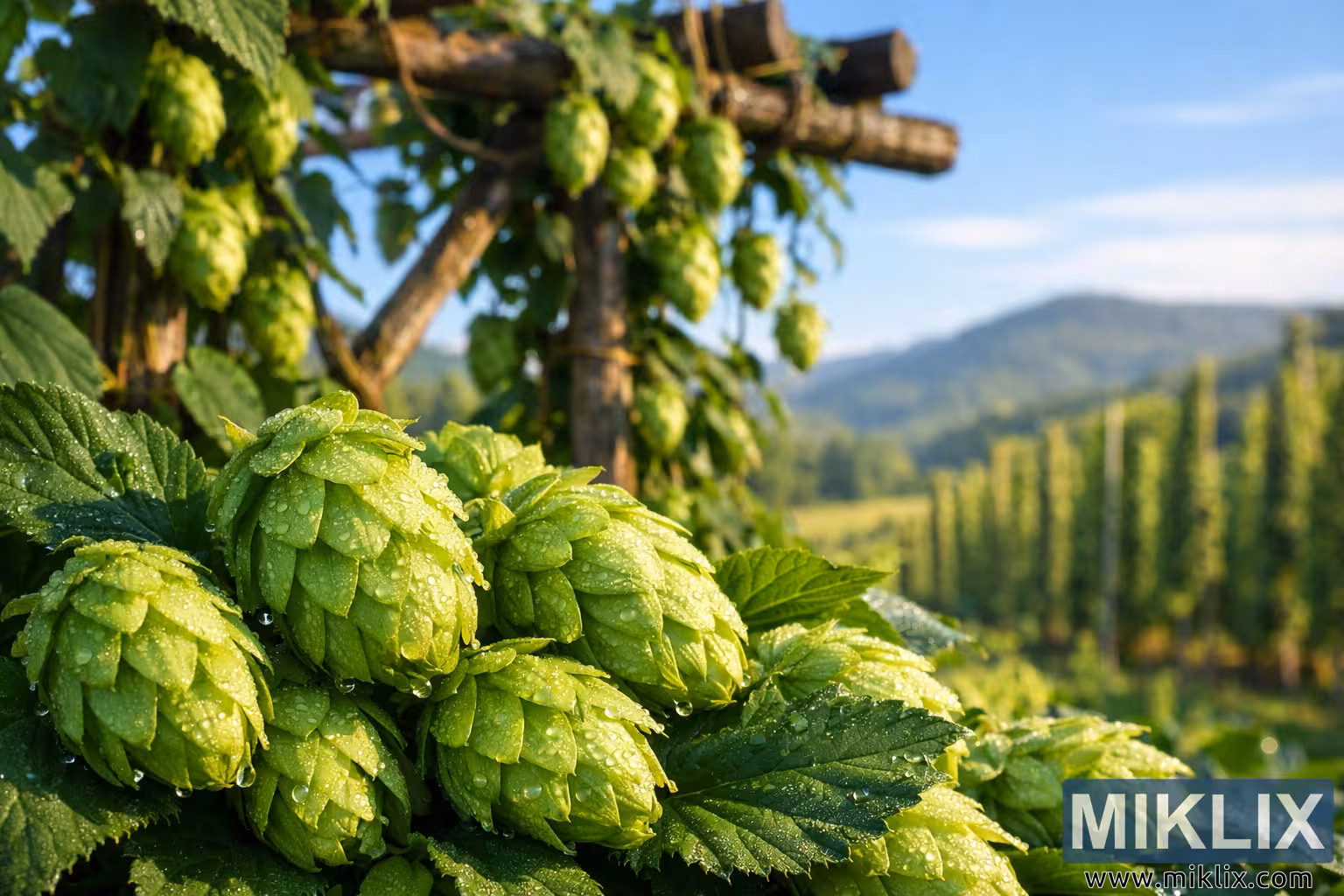 Fresh Cluster Hops on an Australian Hop Farm at Dawn