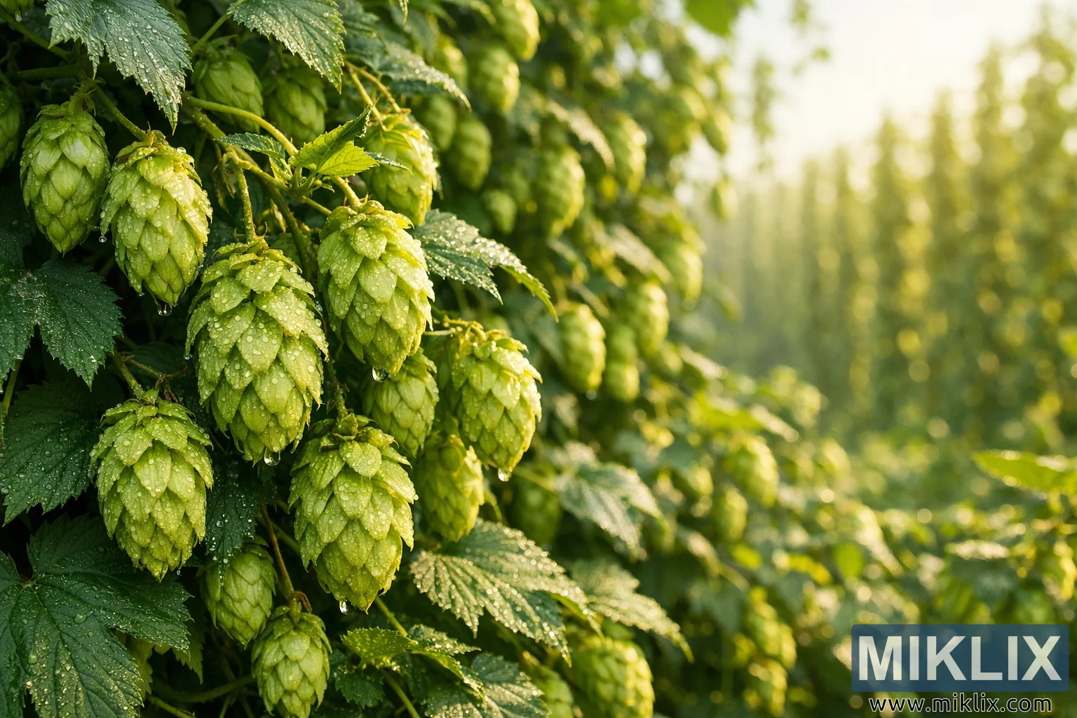 Dew-Kissed Hop Cones in Morning Light