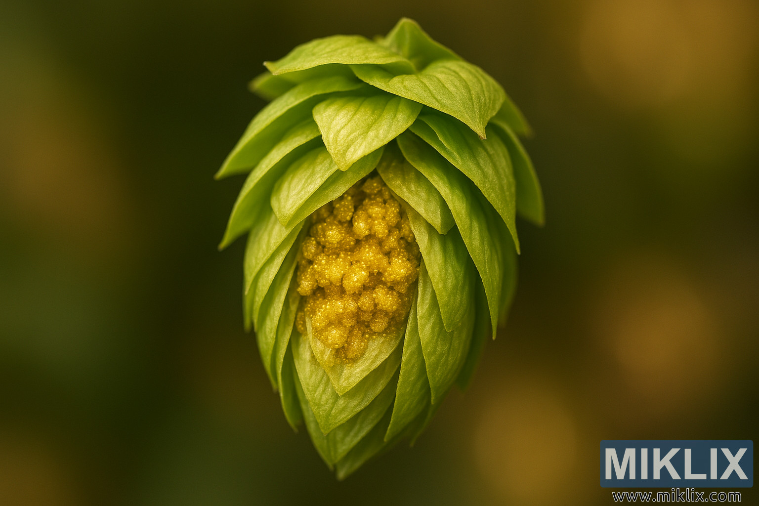 Close-Up of a Mandarina Bavaria Hop Cone with Golden Lupulin
