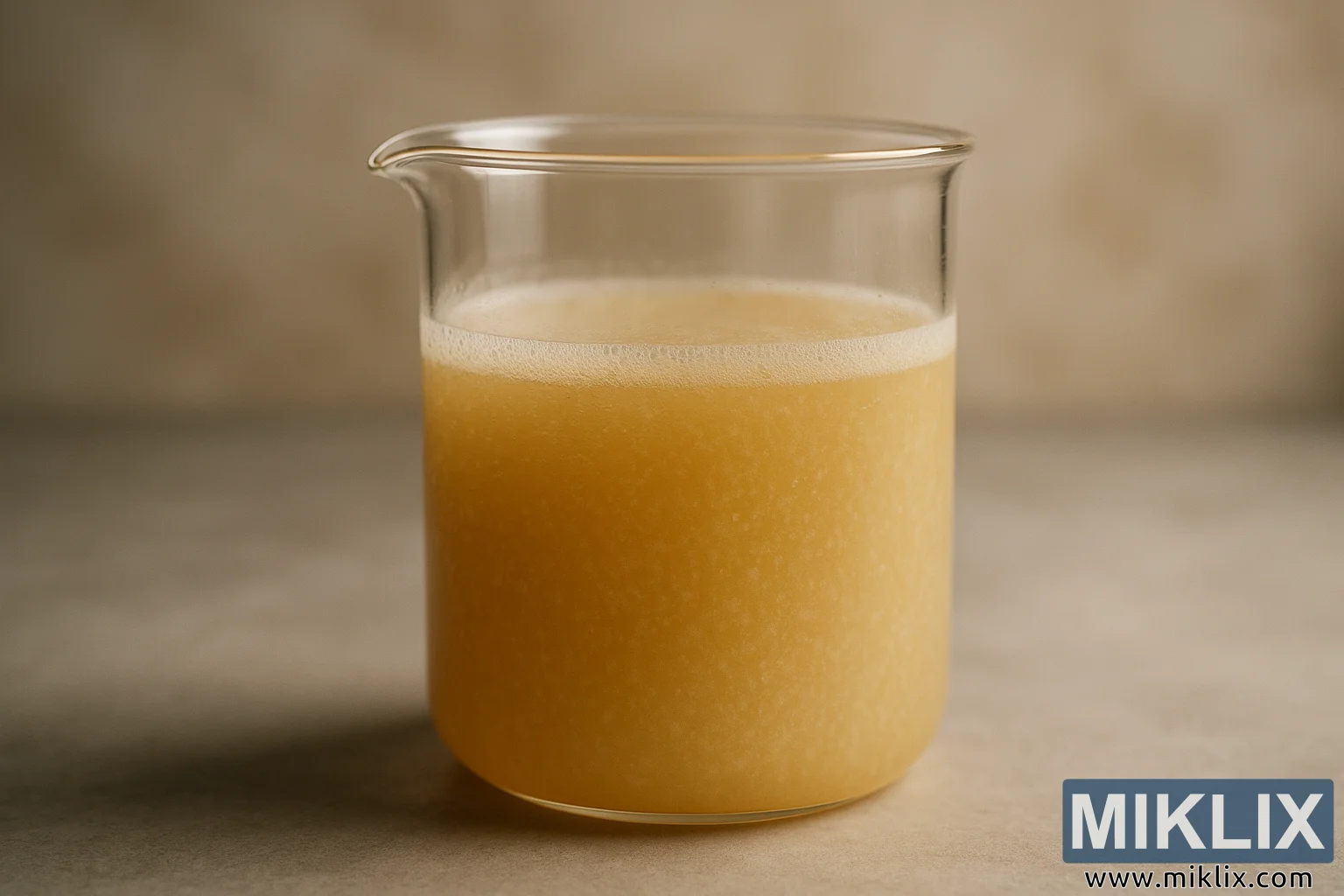 Beaker with Hazy Golden Liquid Showing Yeast Suspension