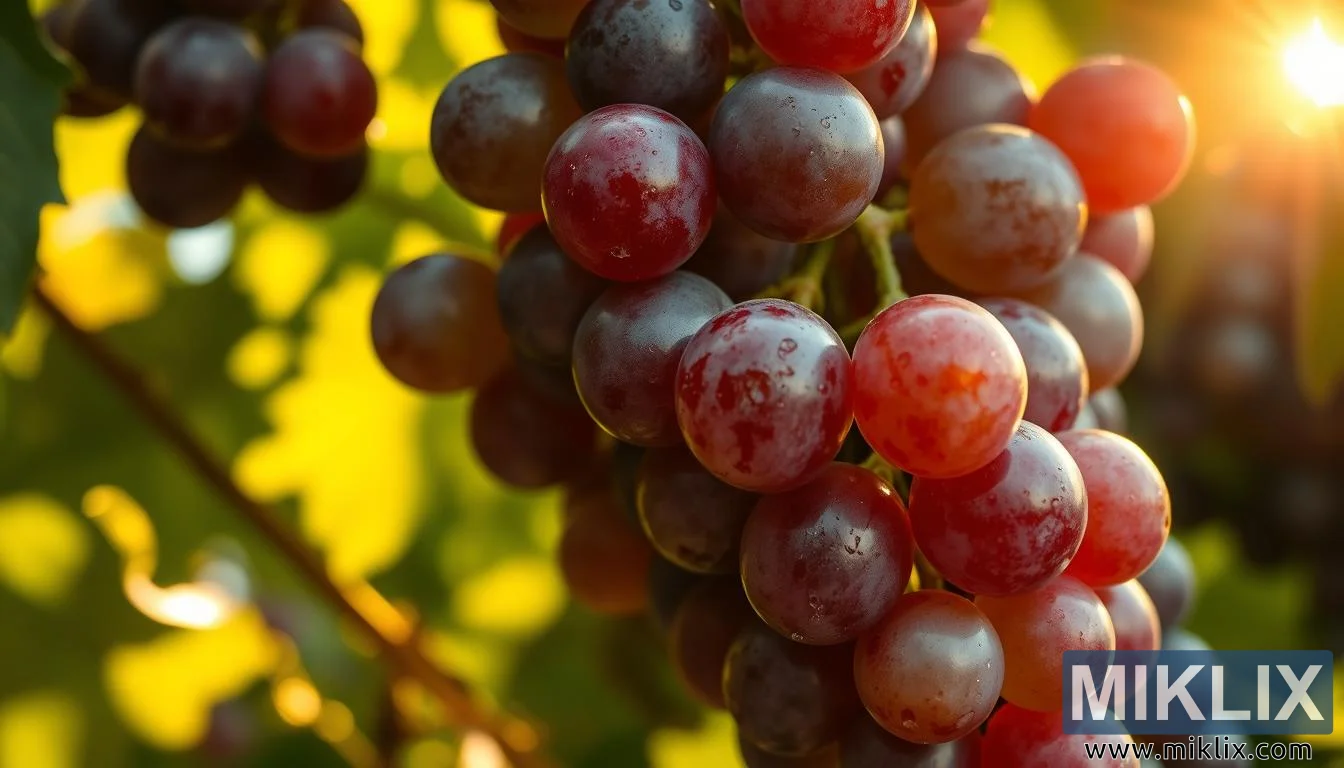 Sunlit grapes in purple and green hues