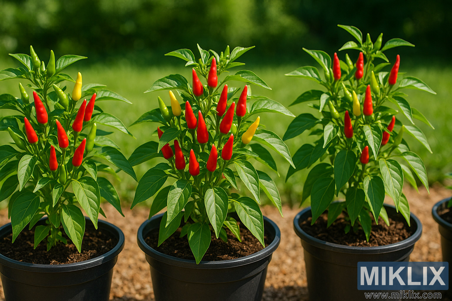 Healthy Chili Pepper Plants Thriving in Sunlit Containers