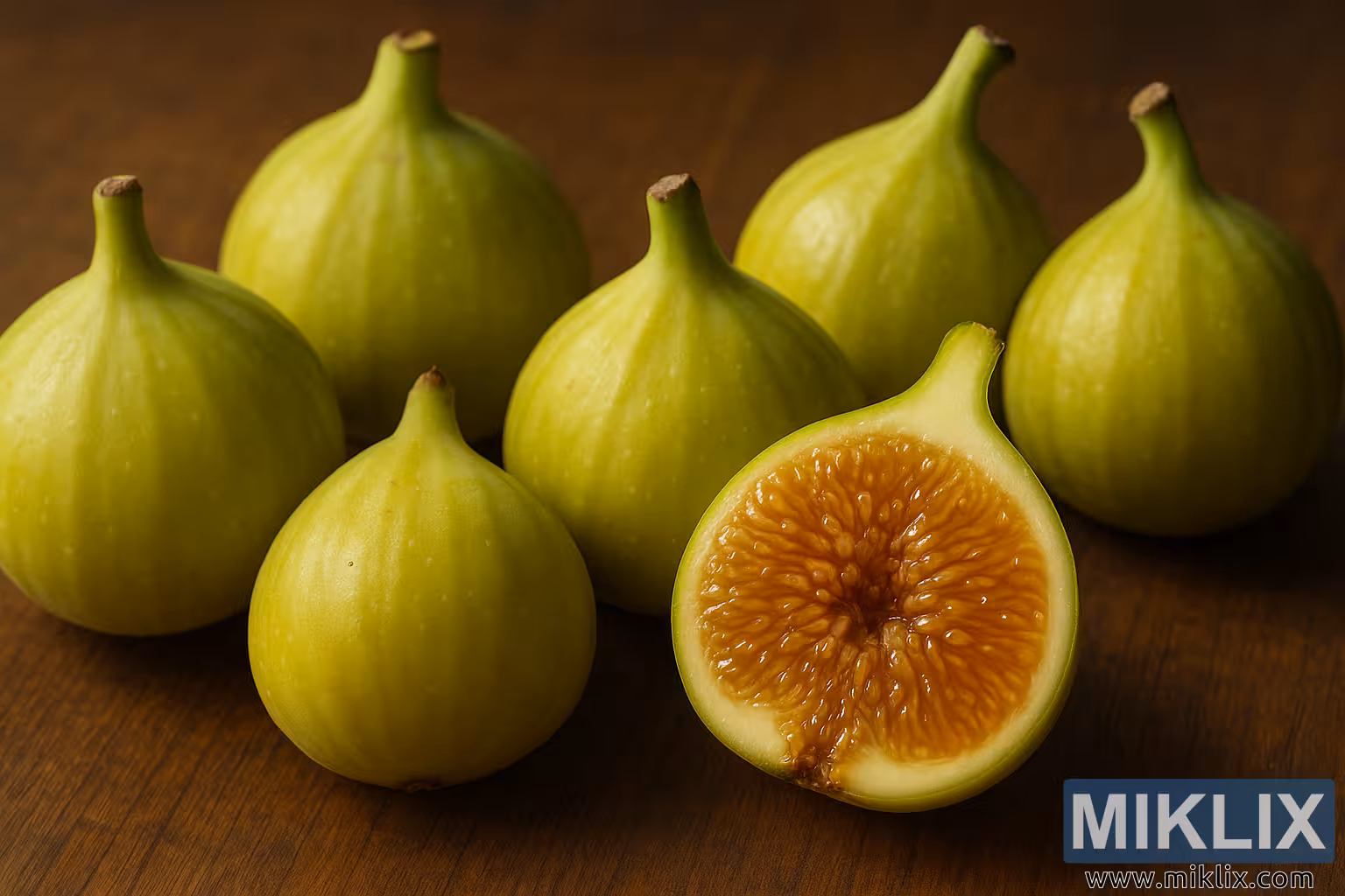 Ripe Kadota Figs with Amber Flesh on Rustic Wood