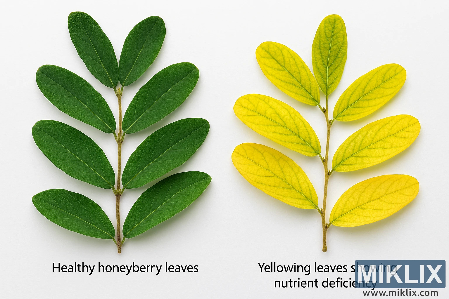 Healthy vs. Nutrient-Deficient Honeyberry Leaves