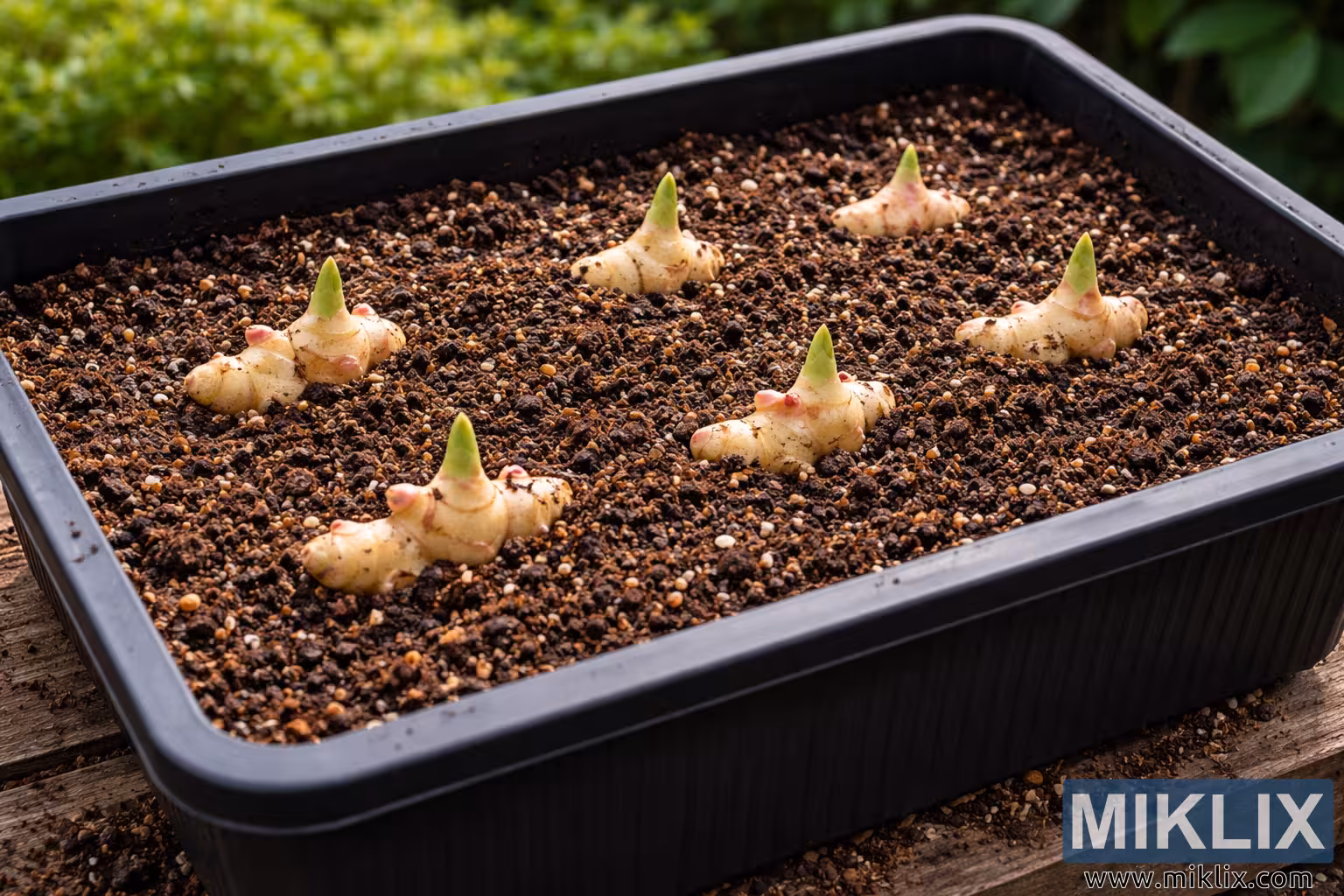 Ginger Rhizomes Planted in a Well-Draining Container Soil Mix