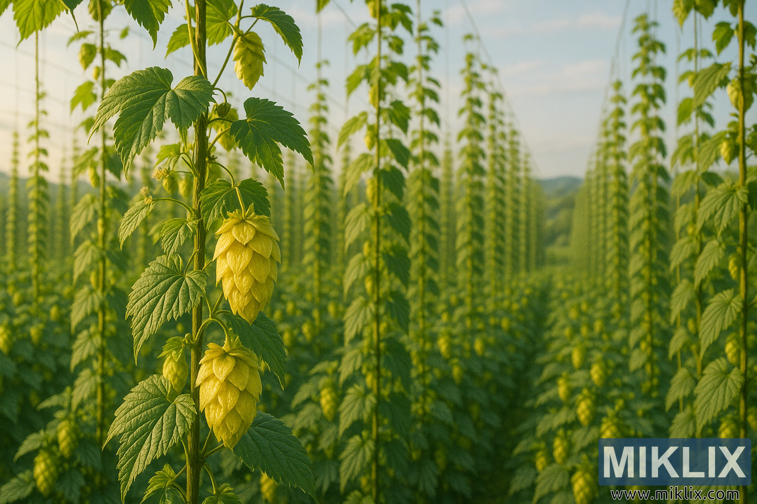 Imagem: Vinhas de lúpulo Golden Star em Sunlit Field