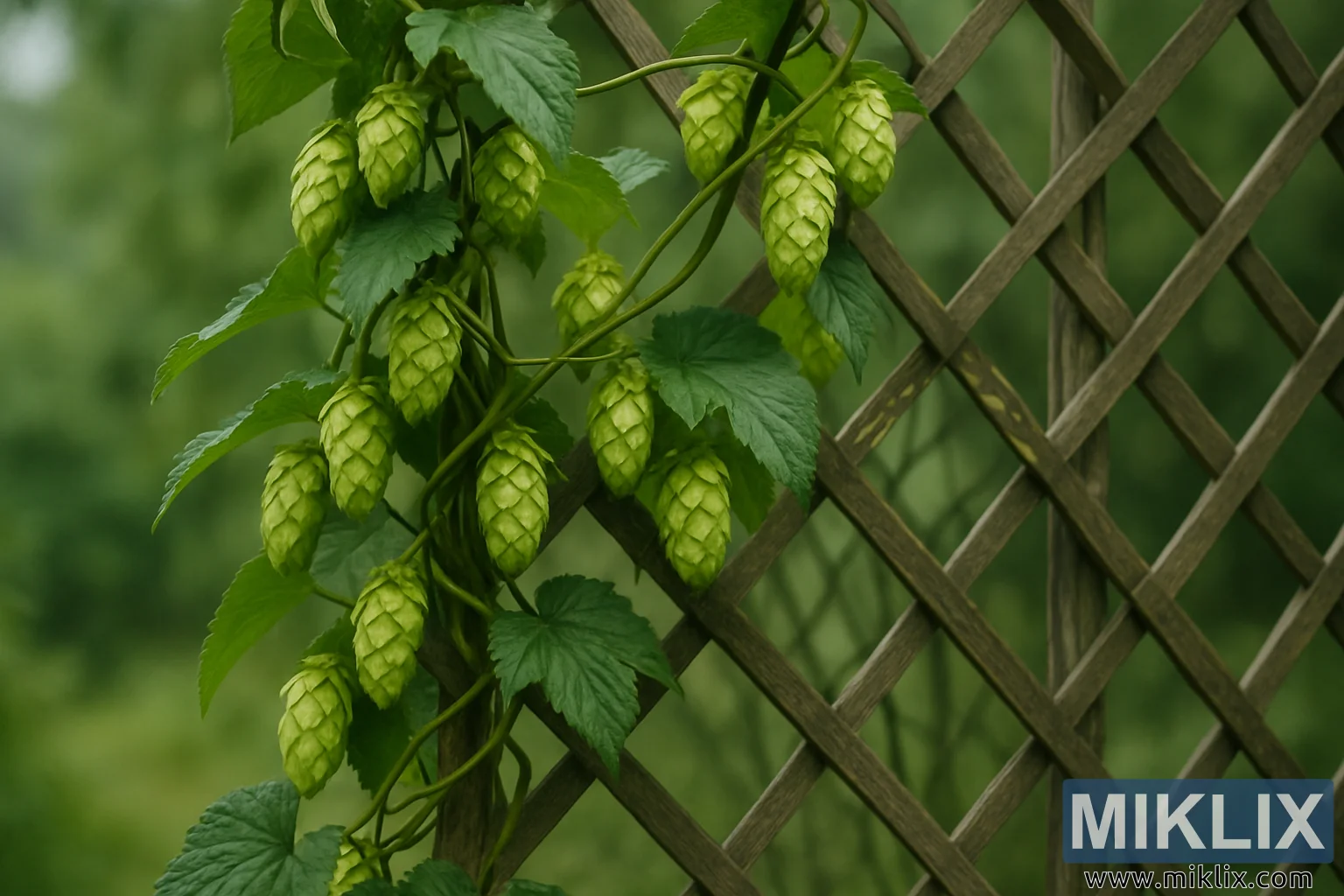 Imagem: Hop Bine com Cones em Trellis de Madeira