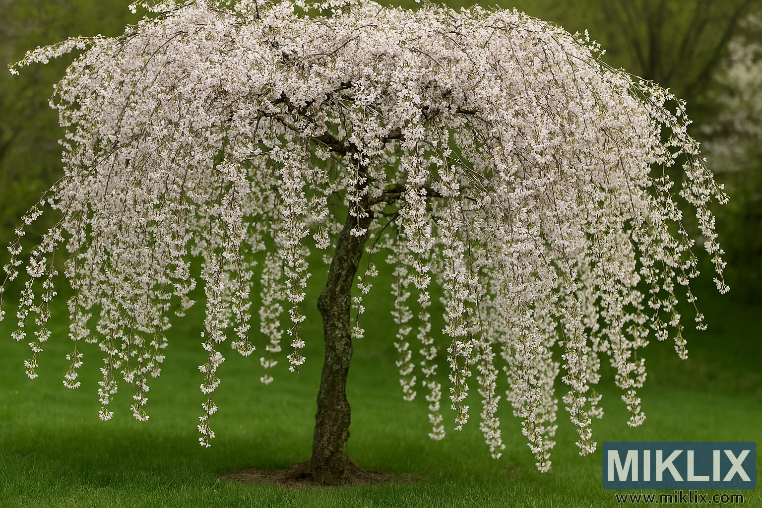 Изображение: Субхиртелла Альба Плакучая вишня в полном цвету
