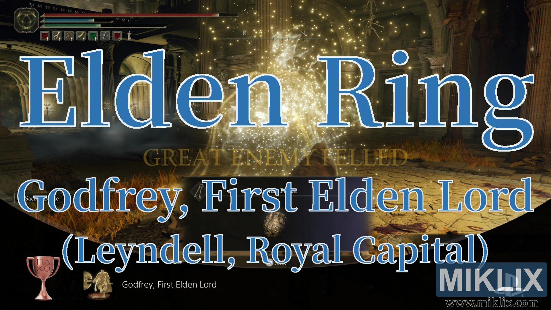 Godfrey, Prvý Eldenský Pán, sa nachádza v strednej vrstve bossov v hre Elden Ring, Greater Enemy Bosses, a nachádza sa v Leyndelle, Royal Capital, po vyšplhaní sa na niekoľko veľkých konárov stromov. Je to povinný boss, ktorého je potrebné poraziť, aby ste mohli v hre pokračovať ďalej.