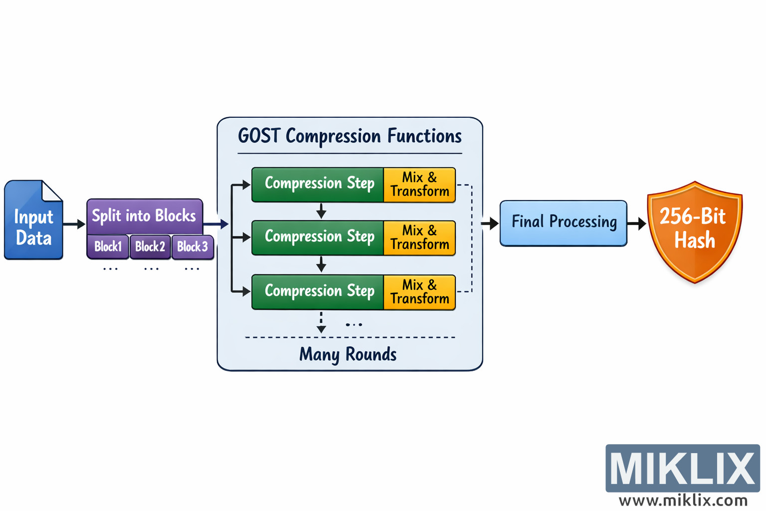 - GOST nezmiešava dáta len raz – mieša ich znova a znova pomocou tajného receptu.