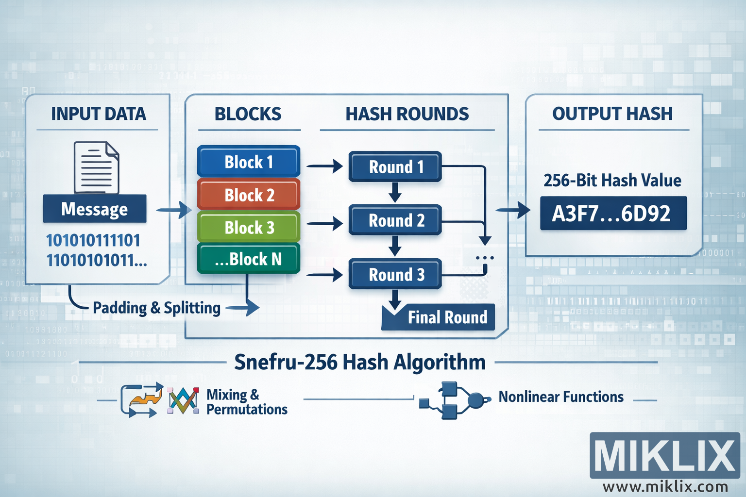 Snefru si môžete predstaviť ako výkonný mixér určený na miešanie a sekanie ingrediencií, kým už nedokážete identifikovať pôvodný vstup, ale rovnako ako všetky hašovacie funkcie, vždy poskytne rovnaký výstup pre rovnaký vstup.