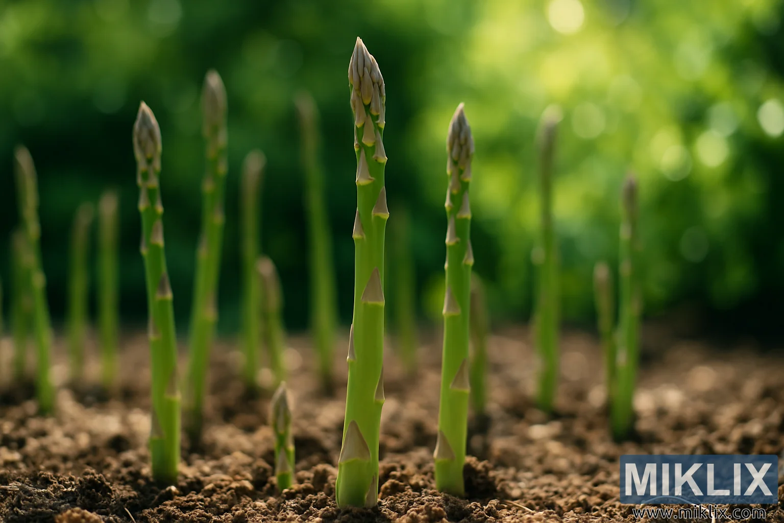 Fresh Asparagus Growing in Sunlit Garden Bed