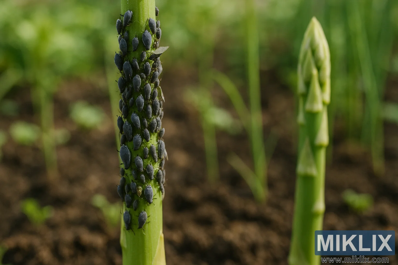 Aphids Feeding on Asparagus in a Garden Bed