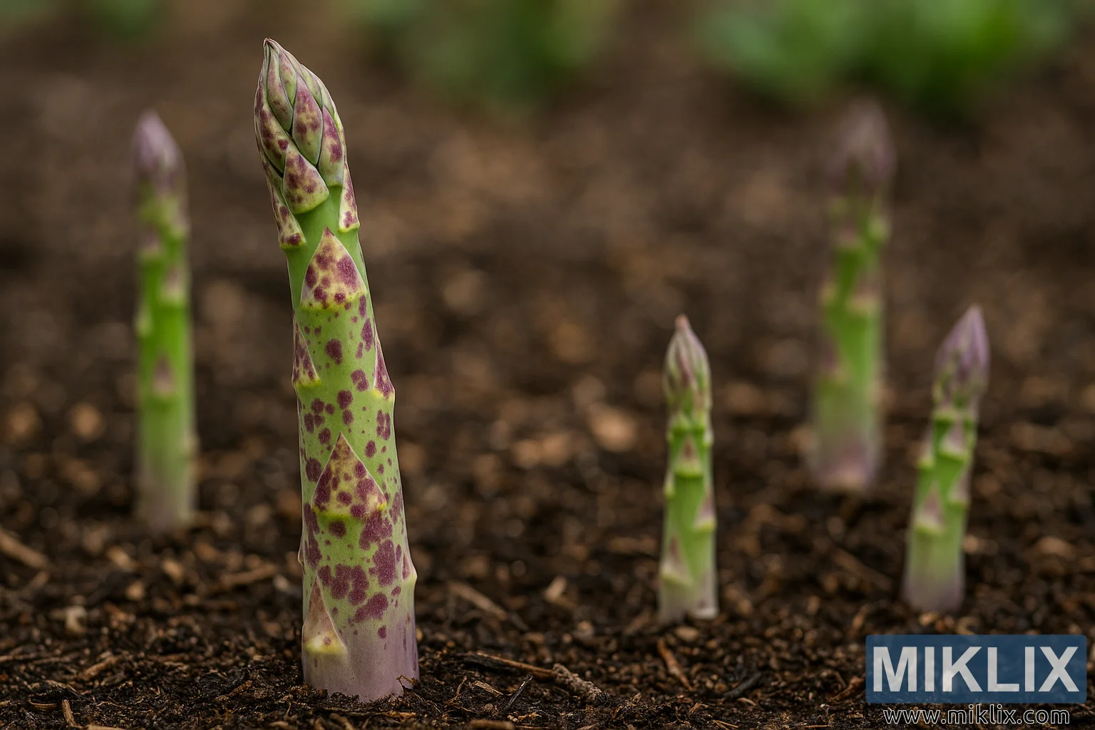 Asparagus Spears Exhibiting Purple Spot in a Garden Bed