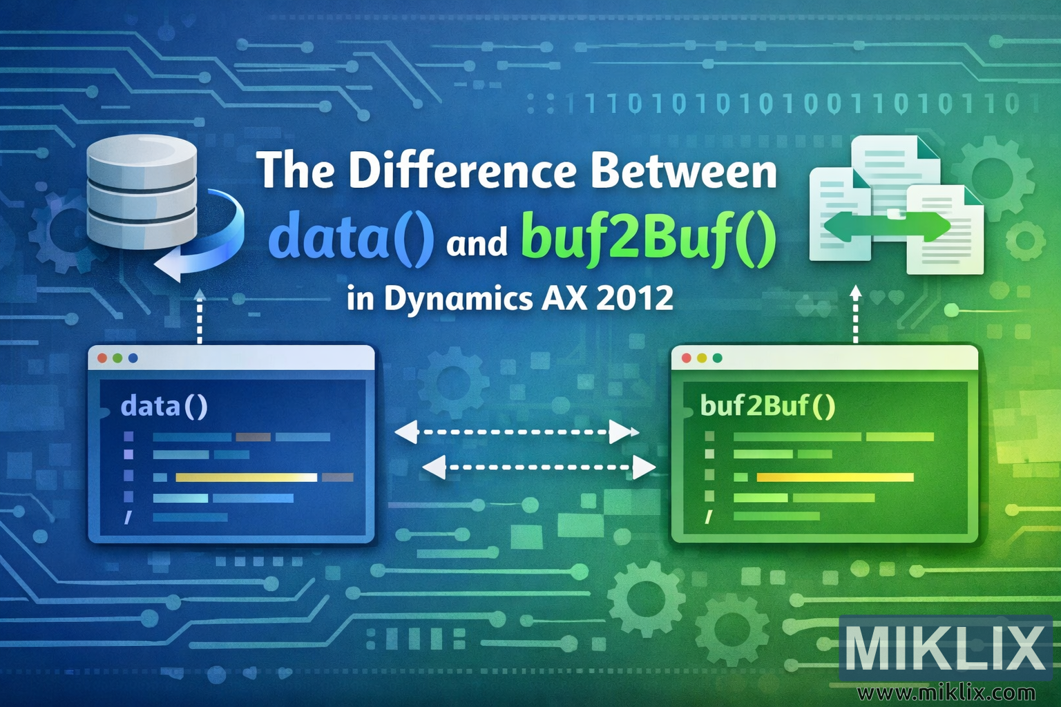 This article explains the differences between the buf2Buf() and data() methods in Dynamics AX 2012, including when it is appropriate to use each and an X++ code example.