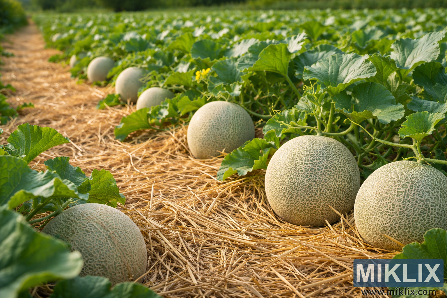 Cantaloupe Vines Growing on Straw Mulch