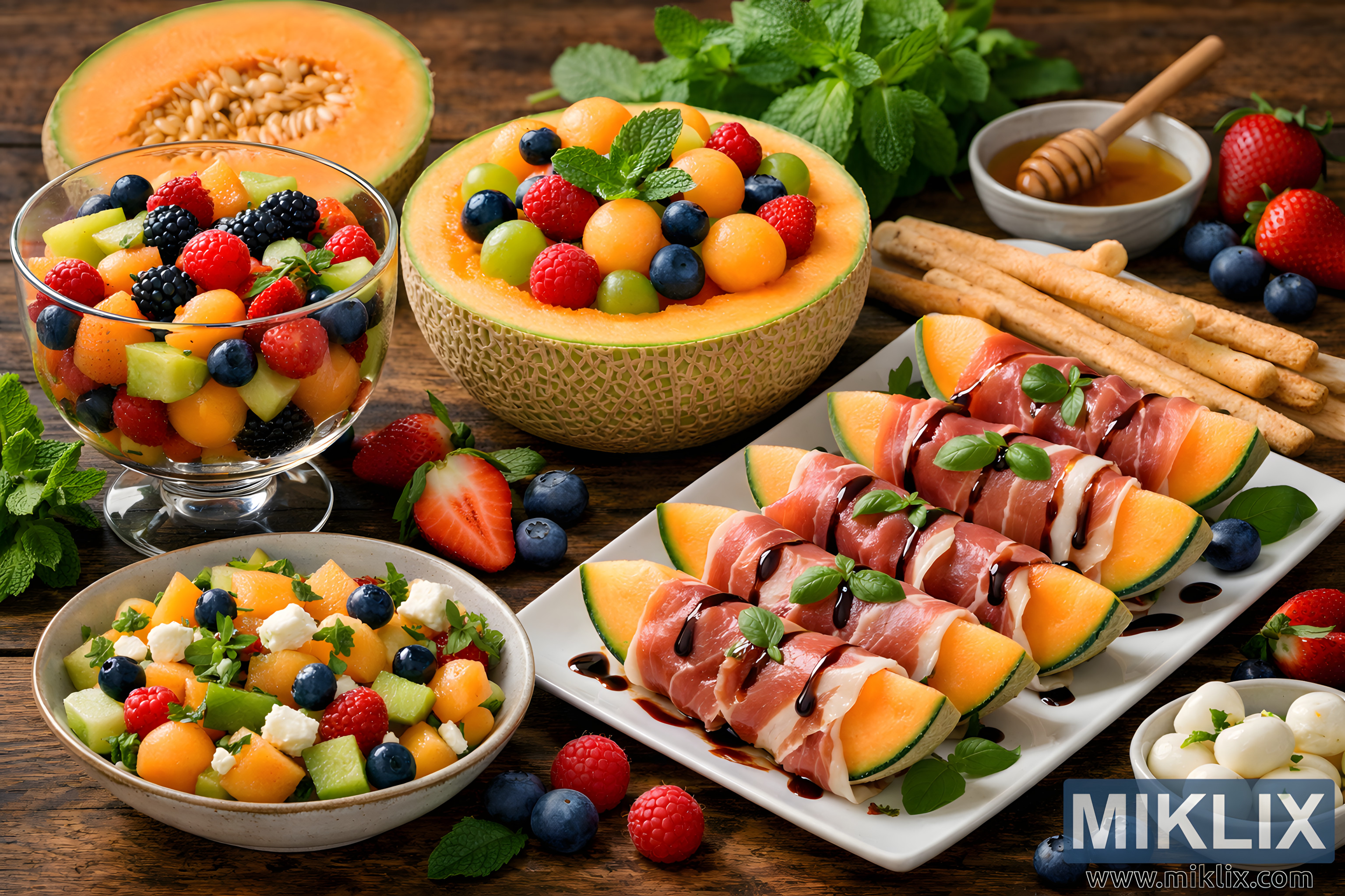Creative Cantaloupe Serving Ideas with Fruit Salad and Prosciutto