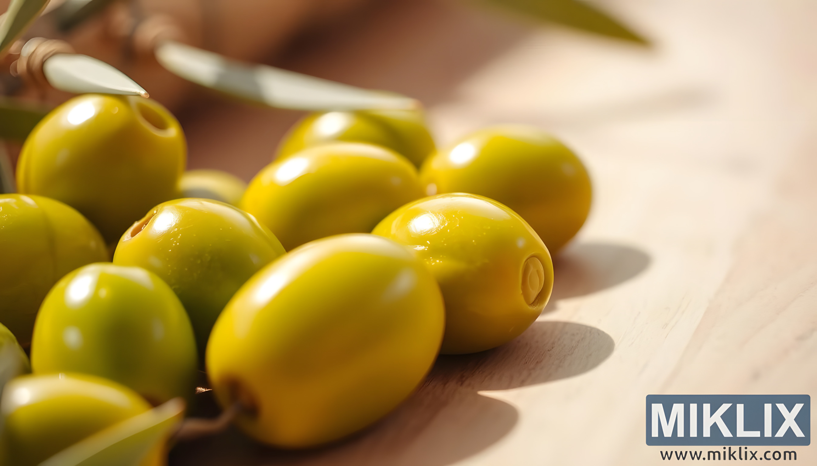 Zgjedhja e sipërfaqes prej druri poshtë ullinjve i shton ngrohtësi dhe tonifikim kompozimit. Tonet e zbehta të drurit kontrastojnë butësisht me nuancat e gjelbra të ullinjve, ndërkohë që i lidhin ato me një estetikë natyrale dhe rustike. Sugjeron tradita të korrjes dhe përgatitjes së ushqimit në dërrasa të thjeshta prej druri, duke e lidhur imazhin me ritualet e përjetshme të kultivimit dhe konsumit të ullinjve. Ngjyrosja e zbehtë e drurit është e dukshme, duke i shtuar teksturë skenës dhe duke përforcuar më tej temën e harmonisë natyrore.