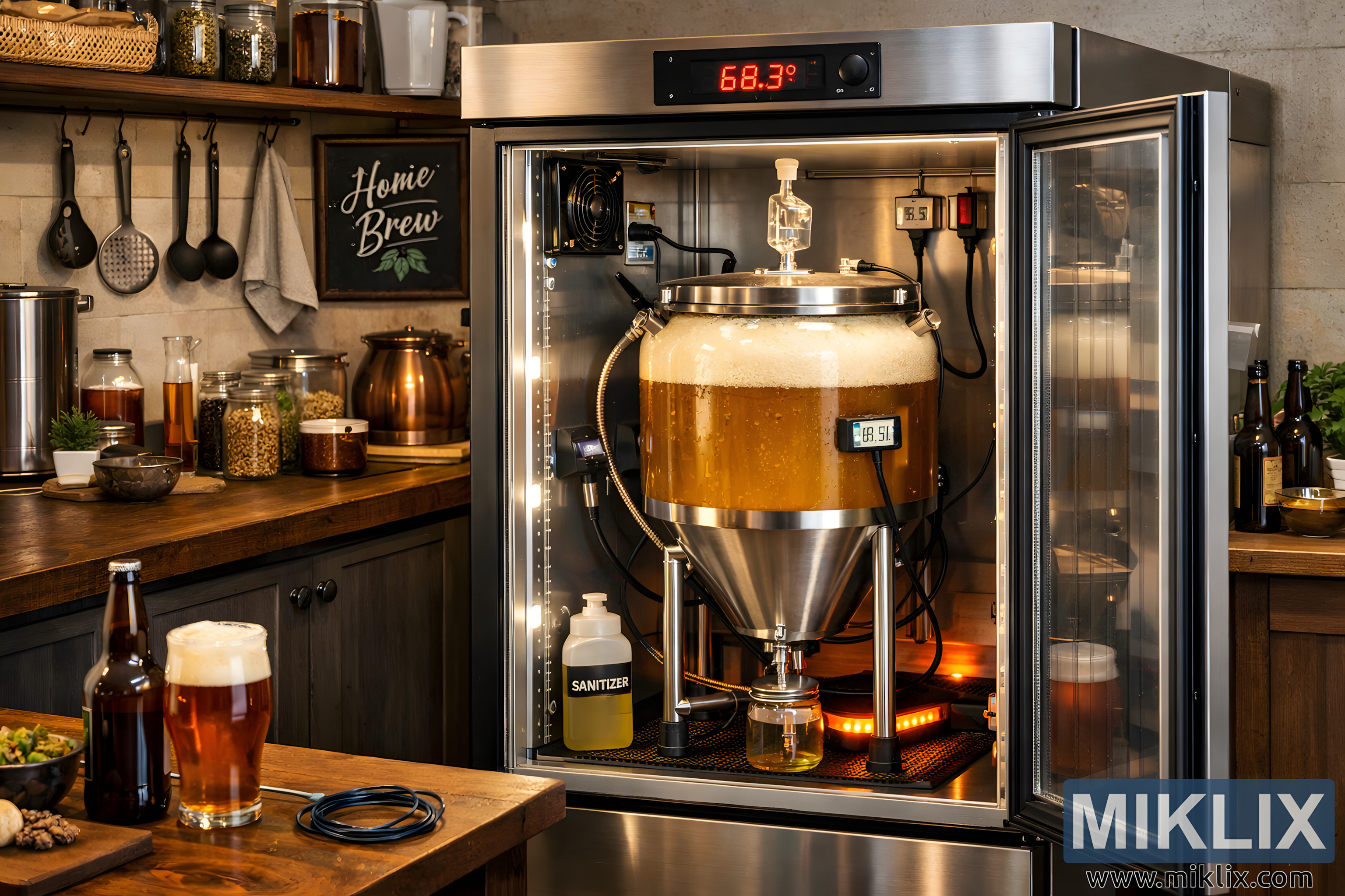 Home Brewing Fermentation Chamber in a Rustic Kitchen