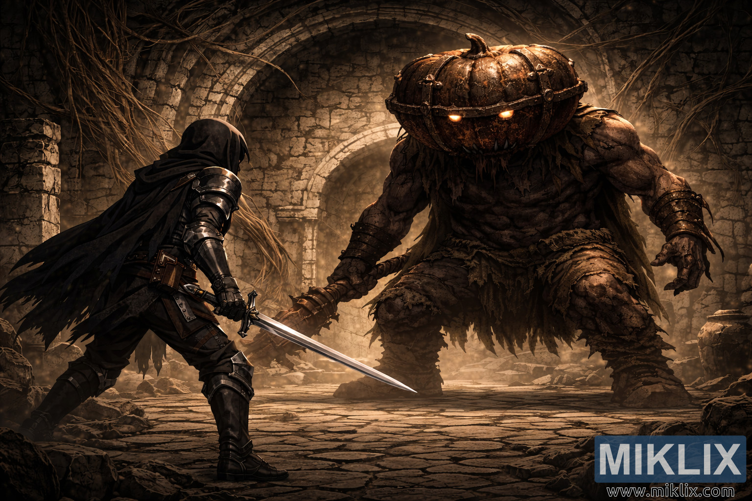 Tarnished vs. Mad Pumpkin Head – Dark Fantasy Ruins Standoff