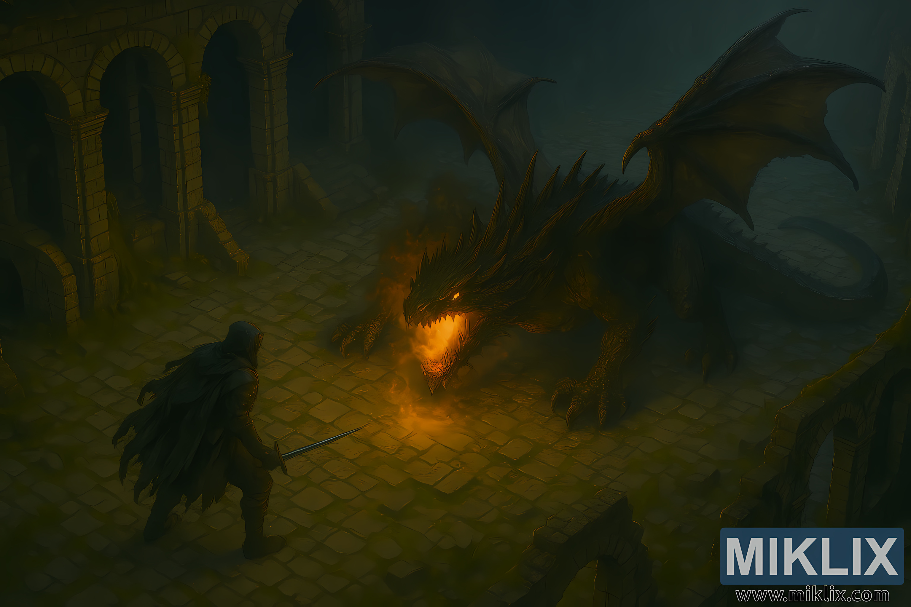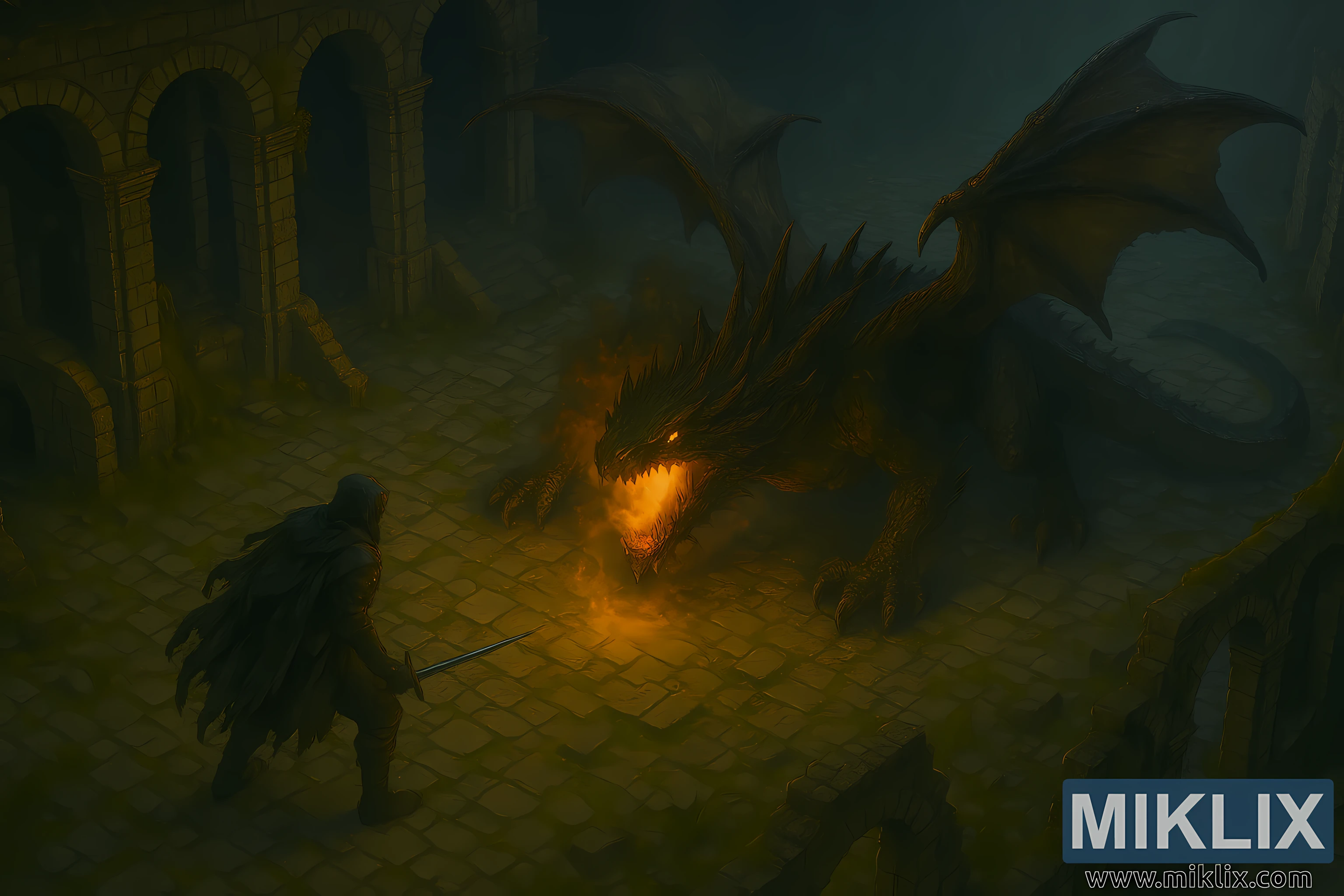 Isometric Clash – Tarnished vs Magma Wyrm Makar