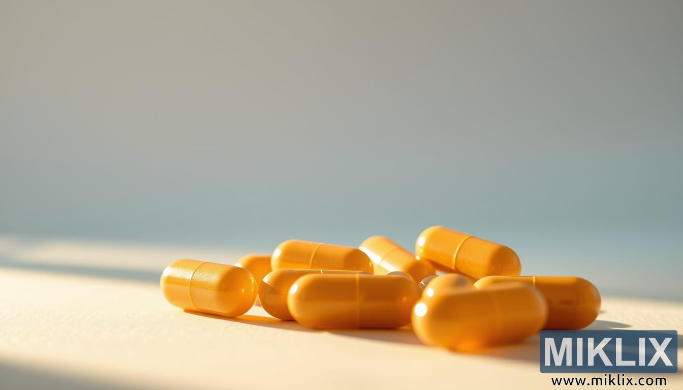 இசையமைப்பின் மனநிலை அமைதியானது மற்றும் சிந்தனைமிக்கது, நம்பகமான சுகாதார சப்ளிமெண்ட்களை அன்றாட வாழ்க்கையில் ஒருங்கிணைப்பதன் மூலம் வரும் அமைதியான உறுதியைத் தூண்டுகிறது. காப்ஸ்யூல்கள் துடிப்பானவை ஆனால் குறைத்து மதிப்பிடப்பட்டவை, கூட்டு சுகாதார ஆதரவில் பெரும்பாலும் தேடப்படும் குணங்கள் - உயிர்ச்சக்தி மற்றும் நுணுக்கத்திற்கு இடையிலான சமநிலையைக் குறிக்கின்றன. காப்ஸ்யூல்களின் சூடான டோன்கள் விளக்குகளின் இயற்கையான தரத்துடன் ஒத்துப்போகின்றன, இது செயல்திறனை மட்டுமல்ல, கரிம நல்வாழ்வின் உணர்வையும் குறிக்கிறது. ஒட்டுமொத்த வளிமண்டலம் தூய்மை, நம்பகத்தன்மை மற்றும் செயல்திறன், குளுக்கோசமைன் சல்பேட்டுடன் நெருக்கமாக தொடர்புடைய குணங்கள் மற்றும் குருத்தெலும்பு வலிமை, மூட்டு இயக்கம் மற்றும் ஒட்டுமொத்த உடல் நல்வாழ்வை ஆதரிப்பதில் அதன் நற்பெயரை வெளிப்படுத்துகிறது.