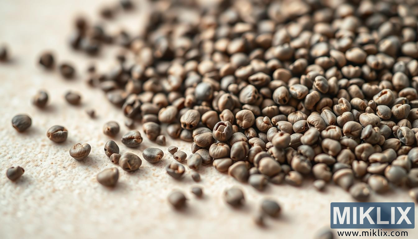 ஒட்டுமொத்தமாக, இந்தப் படம் கலைக்கும் தகவலுக்கும் இடையே ஒரு நேர்த்தியான சமநிலையை அடைகிறது. இது அதன் பொருளின் எளிமையான நம்பகத்தன்மையைத் தக்க வைத்துக் கொண்டு, கலவை மற்றும் ஒளியமைப்பு மூலம் தெளிவு மற்றும் நேர்த்தியைத் தெரிவிக்கிறது. விதைகளில் மட்டுமே கவனம் செலுத்துவதன் மூலம், பார்வையாளரை இடைநிறுத்தி எளிமை மற்றும் இயற்கை விவரங்களில் காணப்படும் மதிப்பை அங்கீகரிக்க ஊக்குவிக்கிறது. இந்த புகைப்படம் விதைகளைப் பற்றி மட்டுமல்ல, உணவு, ஆரோக்கியம் மற்றும் இயற்கையின் அன்றாட கூறுகளில் காணப்படும் அமைதியான அழகுக்கும் இடையிலான பரந்த தொடர்பைப் பற்றியும் சிந்திக்க அழைக்கிறது.